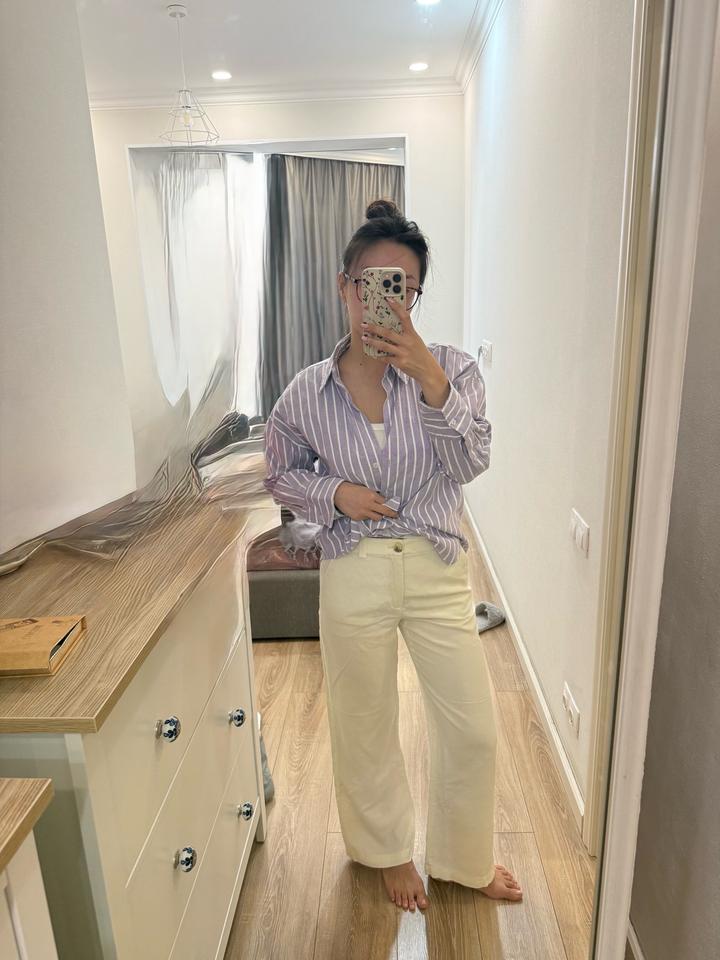 -идеальные брюки на весну-лету -смесовый лен -размер ХС-С -рост 165 -молочный цвет Артикул: 524995