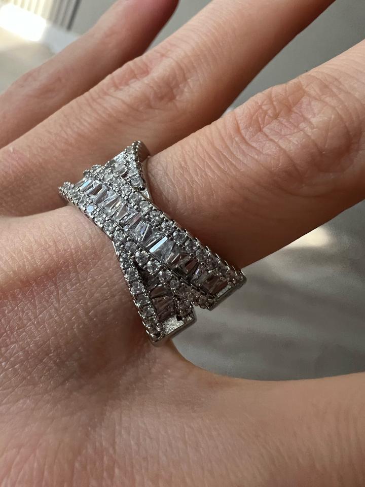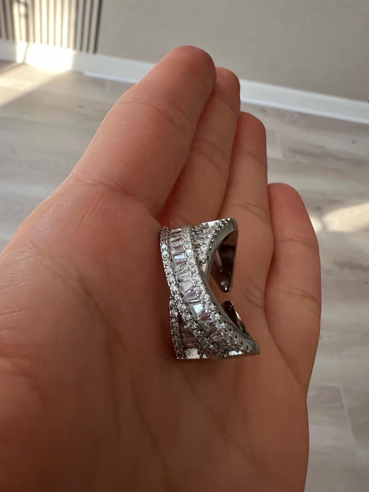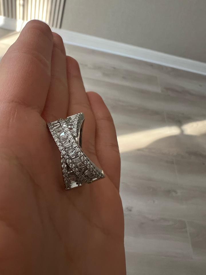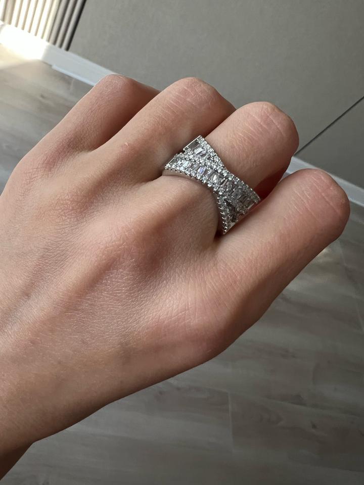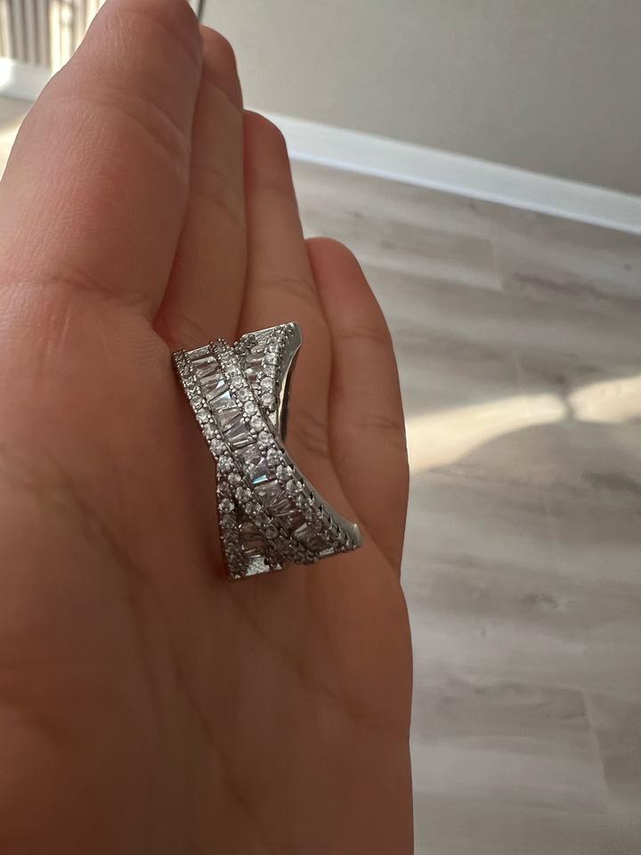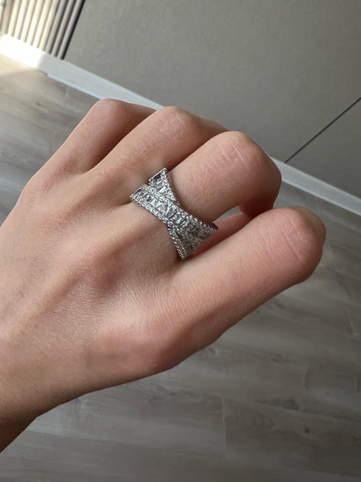 Кольцо новое крест на крест переплетение, стразы красиво и ярко переливаются, диаметр 1.8 см, подойдет на средний и большой пальцы Артикул: 525095