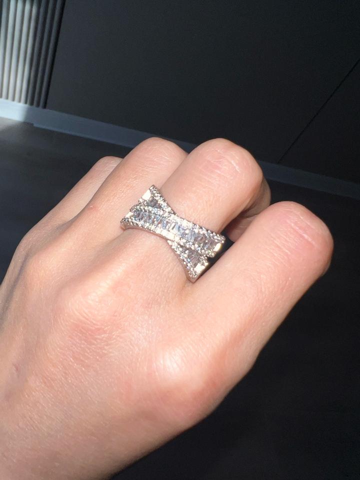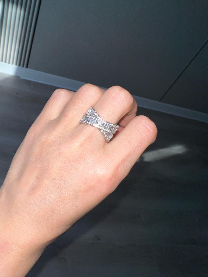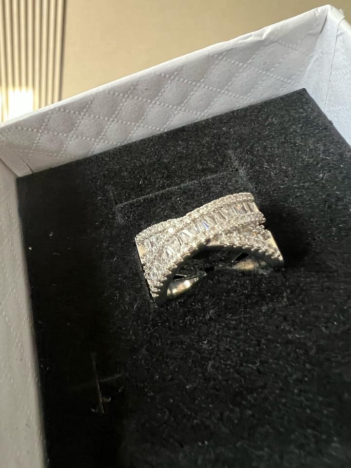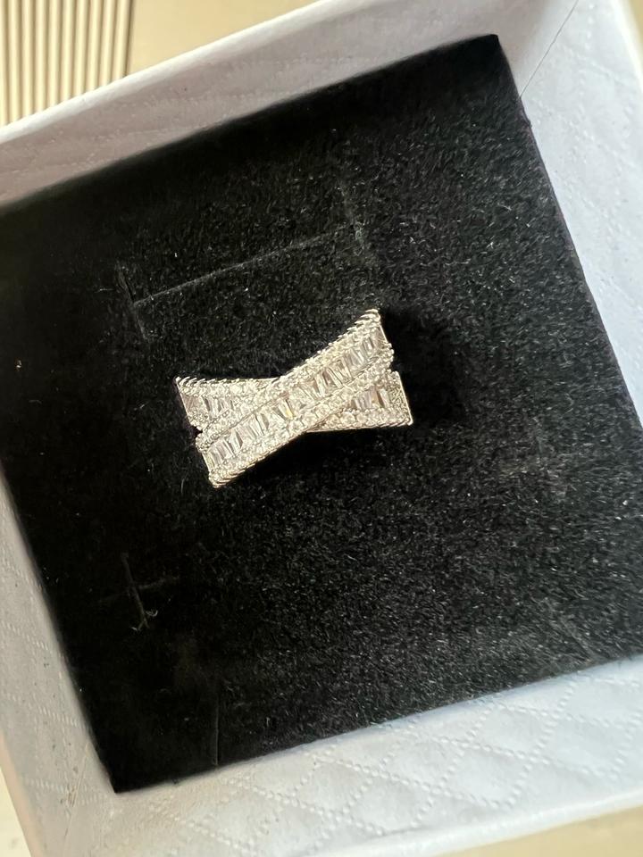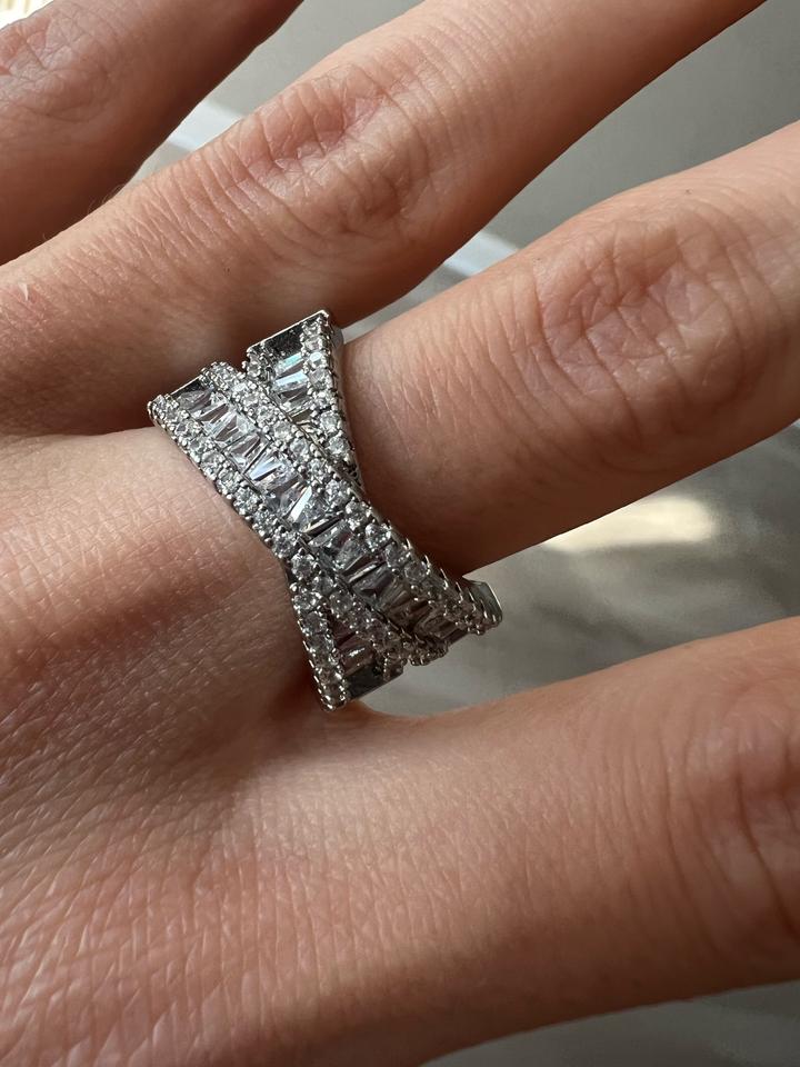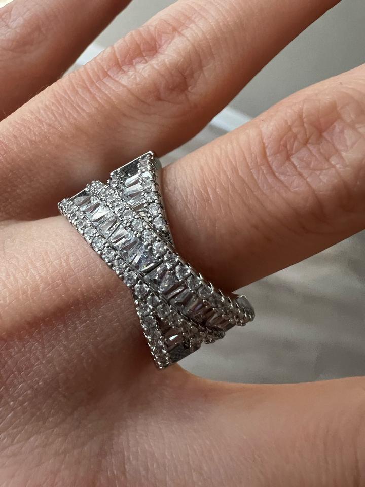 Кольцо новое крест на крест переплетение, стразы красиво и ярко переливаются, диаметр 1.8 см, подойдет на средний и большой пальцы Артикул: 525095