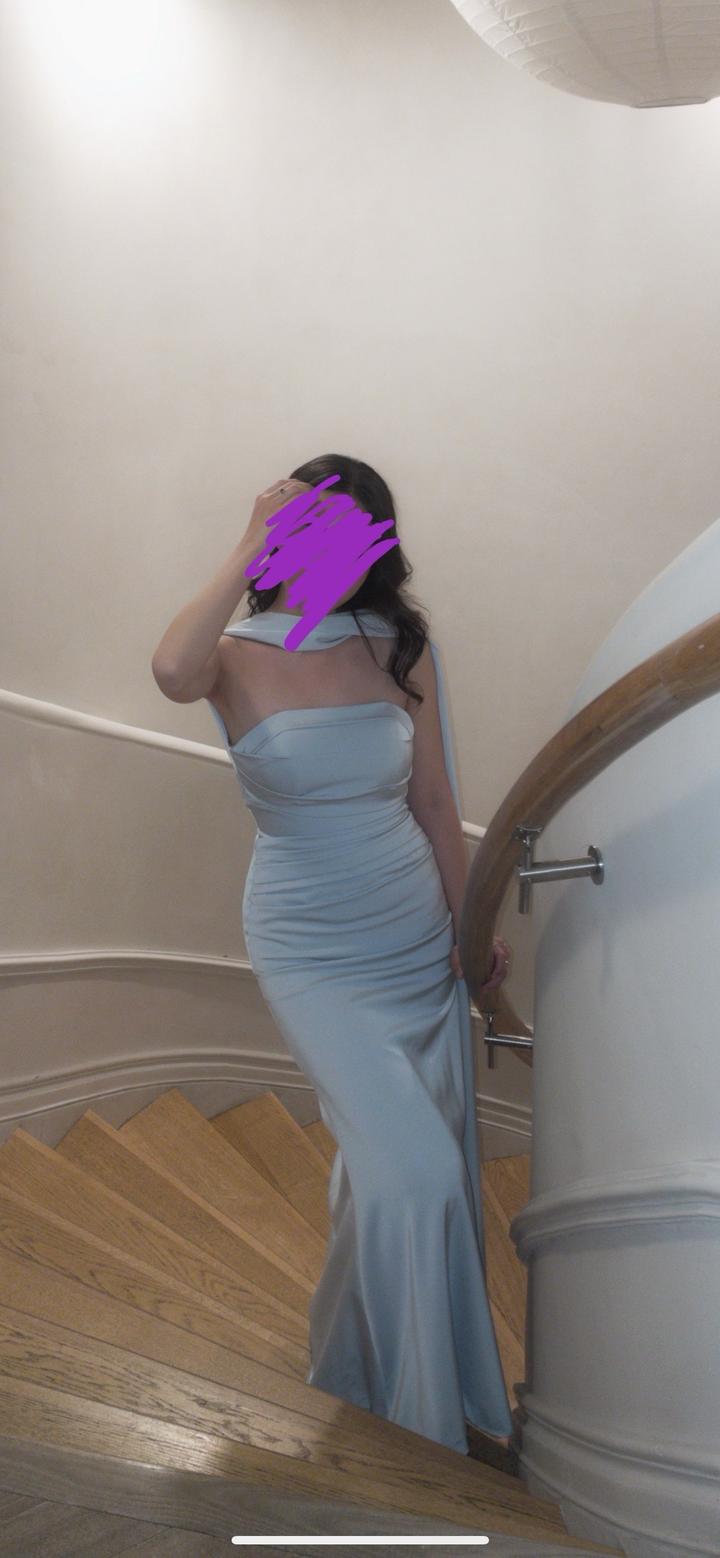 Платье атласное, голубое, с шаром и глубоким размером Рост 165 Артикул: 525122