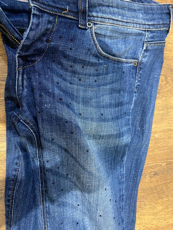 Брала дорого, размер на xs/s узкие. Посадка средняя / стразы классные . Стрейч есть немного Артикул: 525149
