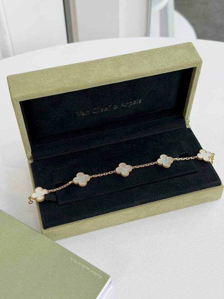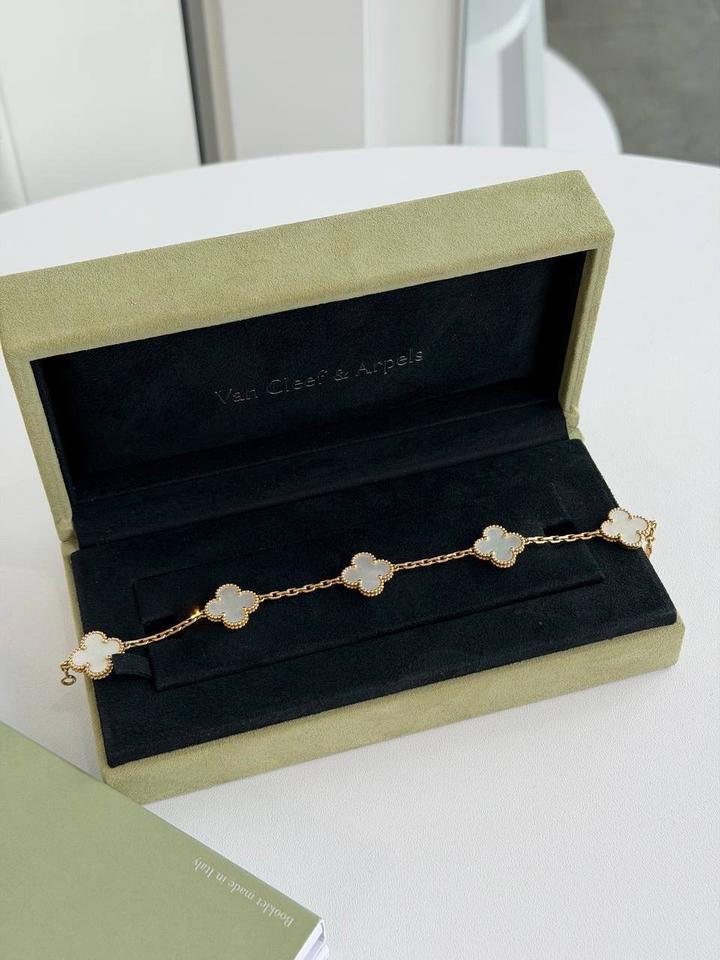 Van Cleef & Arpels Браслет Van Cleef & Arpels выполнен из желтого золота с инкрустацией белого перламутра, Состояние отличное, в комплекте чехол и сертификат. Бутик: 2.716.000 тг Артикул: 525223