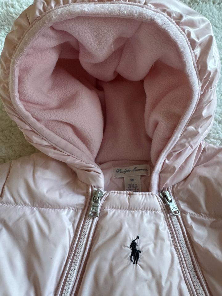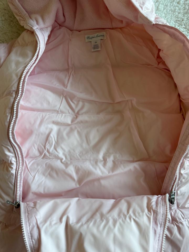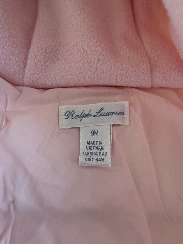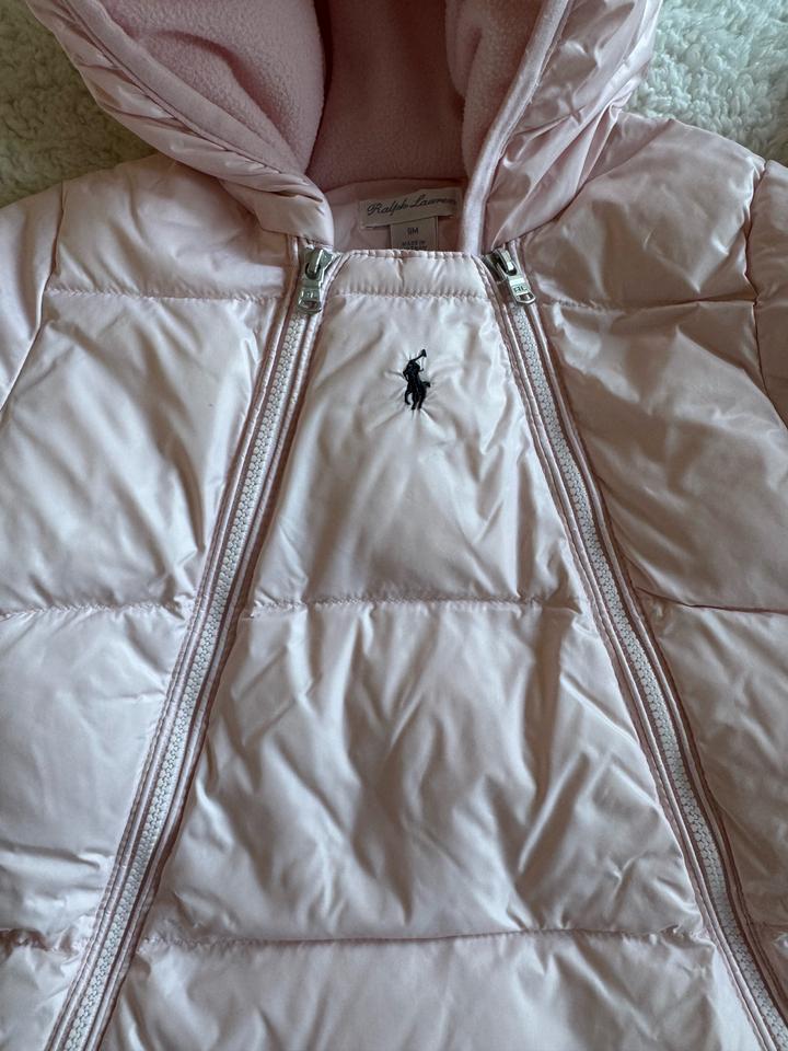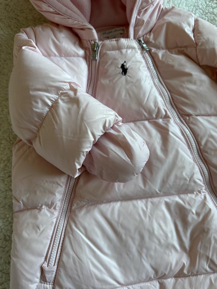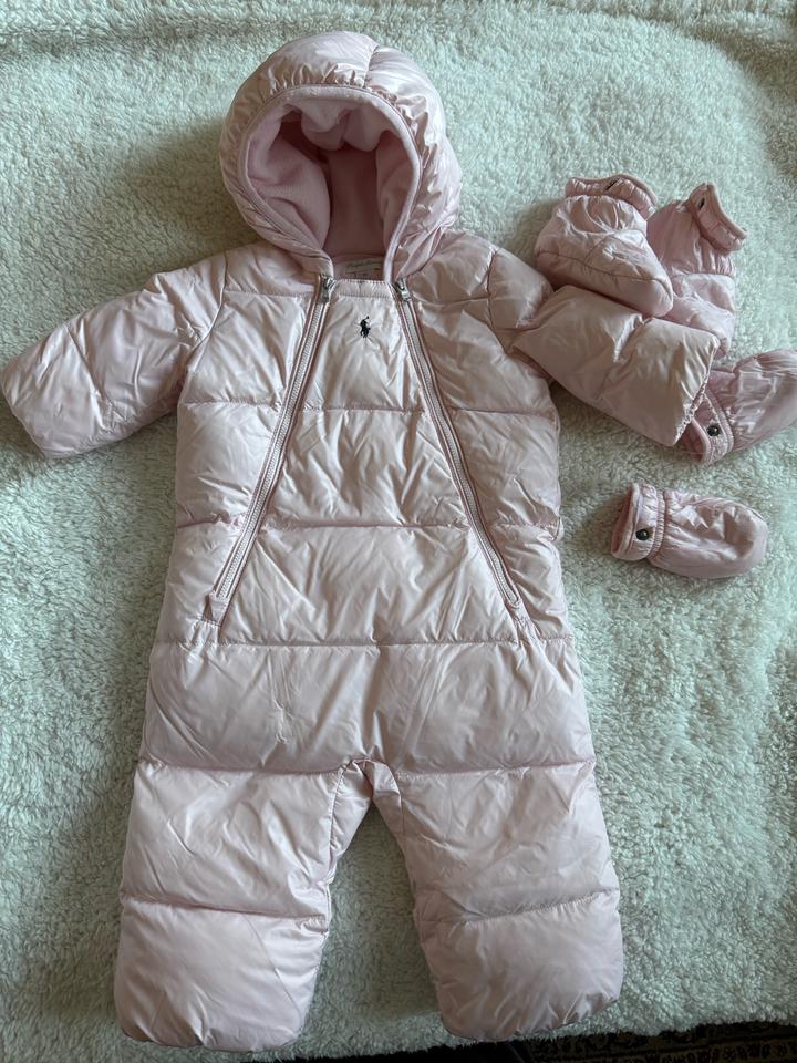Комбинезон Ralph Lauren нежно-розового цвета, на 9 месяцев, пинетки и варежки снимаются, можно носить отдельно. Легкий, удобный. Артикул: 525256