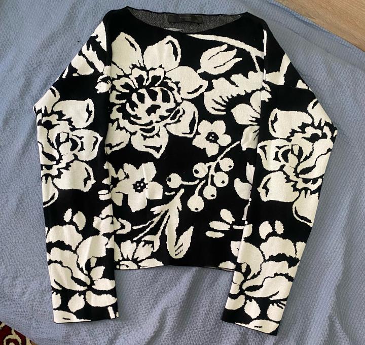 Черно белый стильный свитер с принтом цветов Прекрасно дополнит образ Артикул: 525261