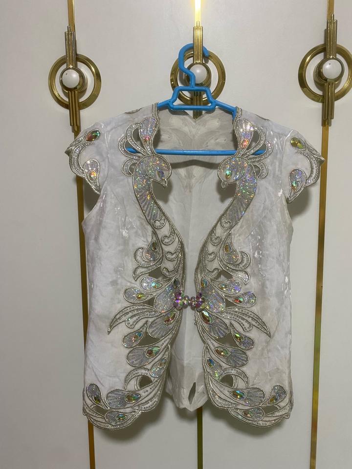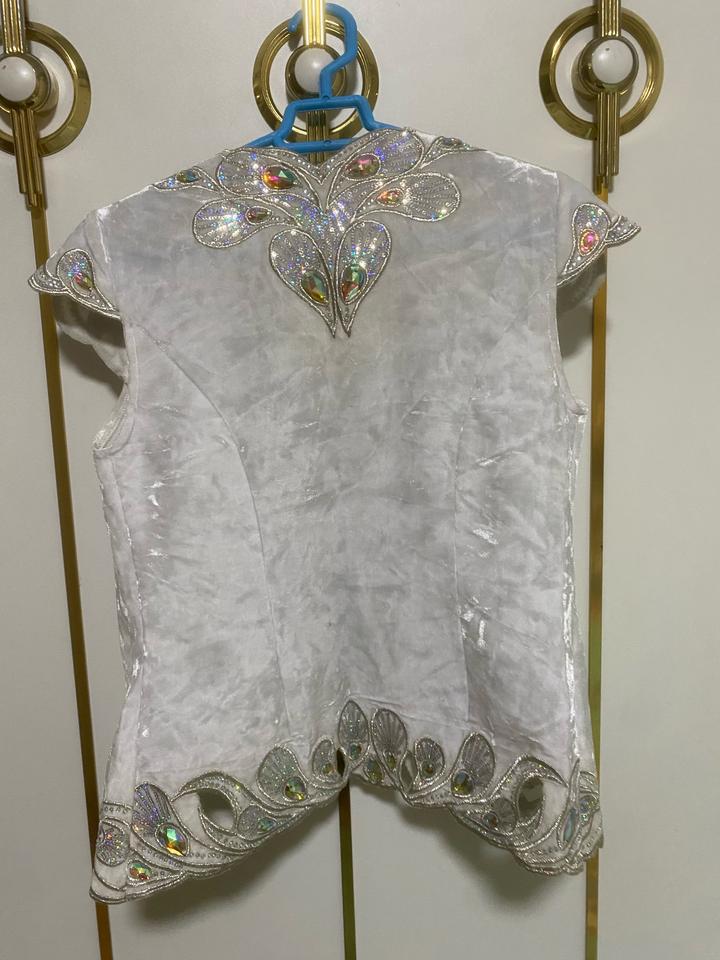Жилетка из белого велюра украшенная старазам и камнями. Размер S-M Артикул: 525415