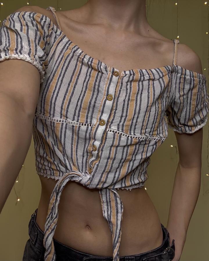 Легкий летний топик на теплое время года. В нем абсолютно не жарко, комфортный, в таком хиппи вайбе немного Покупала в Bershka, носила часто и с любовью 🫧 Если что, нахожусь в Ауэзовском районе, если вам недалеко, можно не платить за доставку и приехать забрать Артикул: 525612