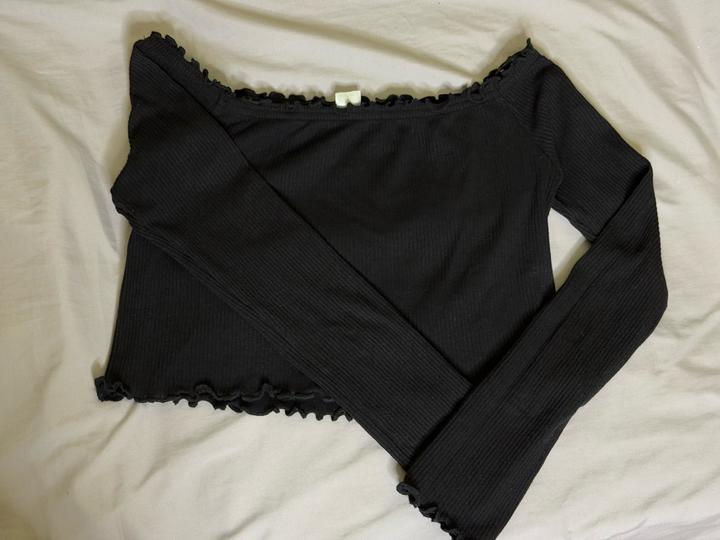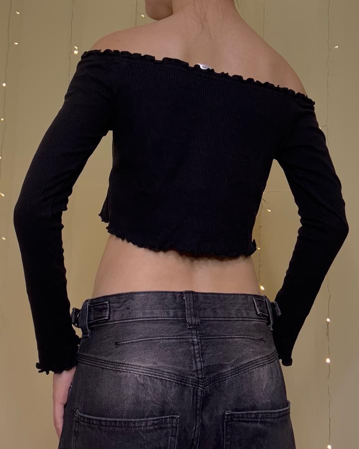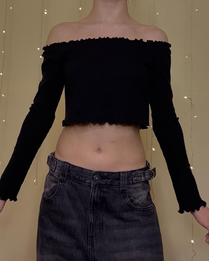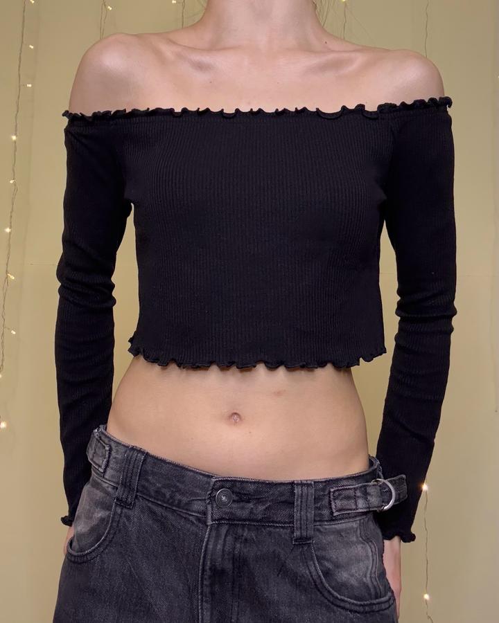 Черный топик на теплое время года Легкий, короткий, подчеркивает животик и ключицы. Наверху есть резиночка, которая помогает топу оставаться на месте и сползать никуда Покупала в H&M Артикул: 525625