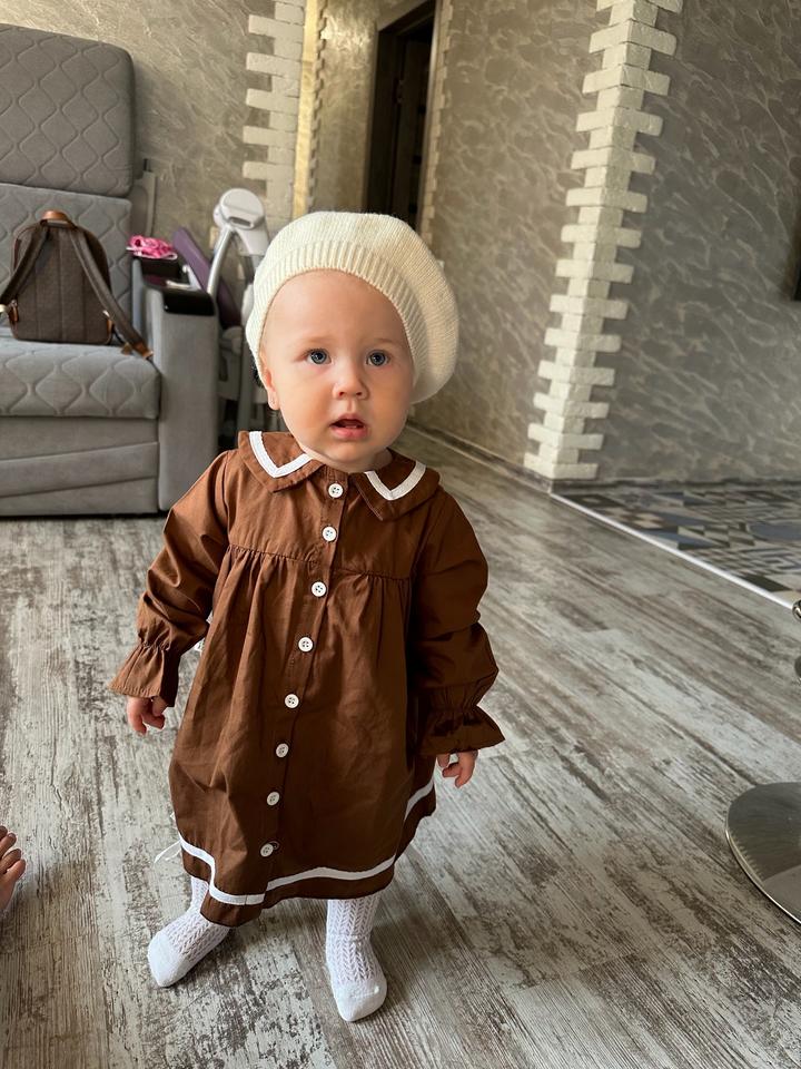 Коричневое платье, с воротником, Турция , на возраст примерно 1годик -1,5. Хорошее состояние, без пятен . Тоненькое , сатин . Артикул: 525647