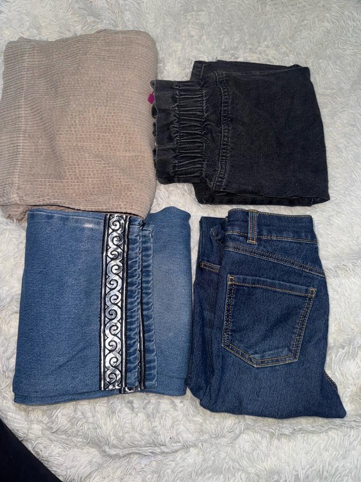 4пары брюк для девочки 6-7лет. 2джинсы от LC WAIKIKI, джинсы бренда Daniele Patric, и вельветовые широкие брюки ZARA. Цена за все 5000 Артикул: 525806