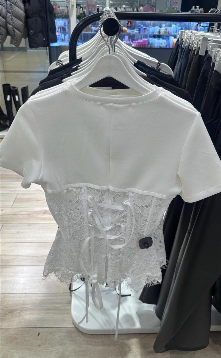 Трендовая футболка с кружевами, в идеальном состоянии, корсетная. Убрала спицы внутри корсета так как тяжело ходить в нем со спицами из пластмассы. На внешний вид никак не повлияло, все так же как на фото. Дополнительно могу скинуть фото если купите. Надевала всего один раз. Артикул: 525823
