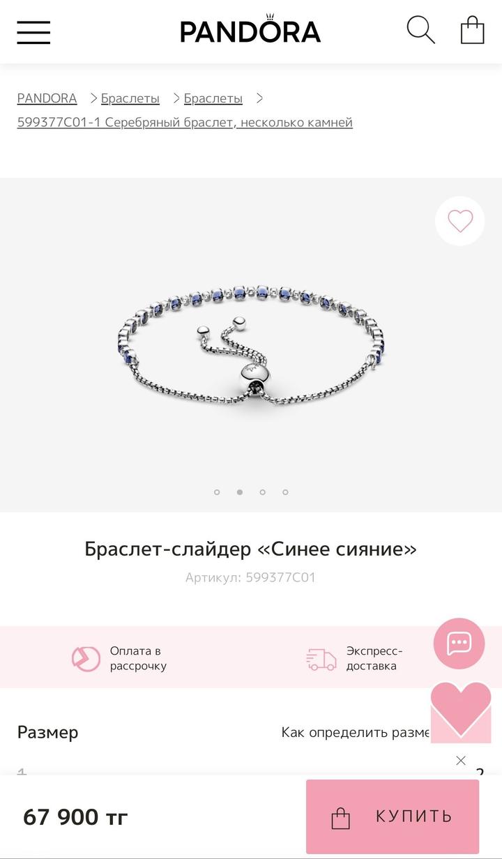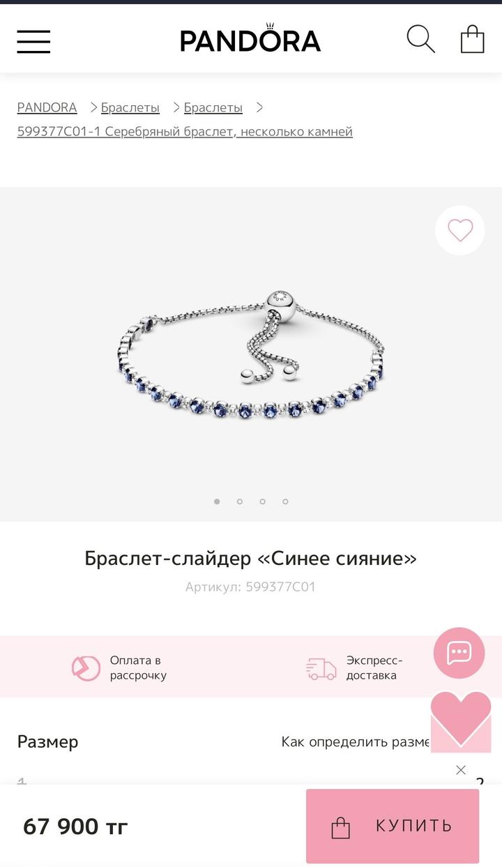 Браслет Pandora Браслет слайдер "Синие сияние" Есть две коробки и пакет Ценник есть Артикул: 525980