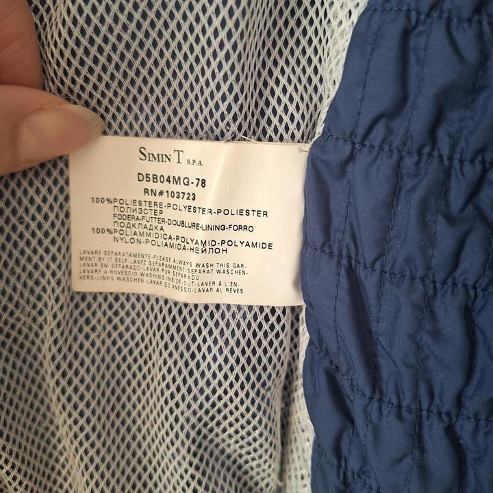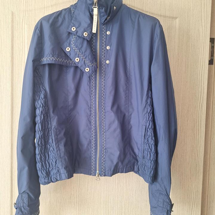 Состояние отличное. Внутри сетка , в рукавах тоже. Бока собраны и тянутся подходит на S и M. Замок растегивается сверху и можно снизу. Смотрится стильно. Оригинал фото этикетки есть. Воротник двойной на фото видно. Фото не передает цвет , фотографировала днем , в реальности синее цвет и кнопки больше сиреневые. Когда покупала цена была 300 евро Артикул: 525991