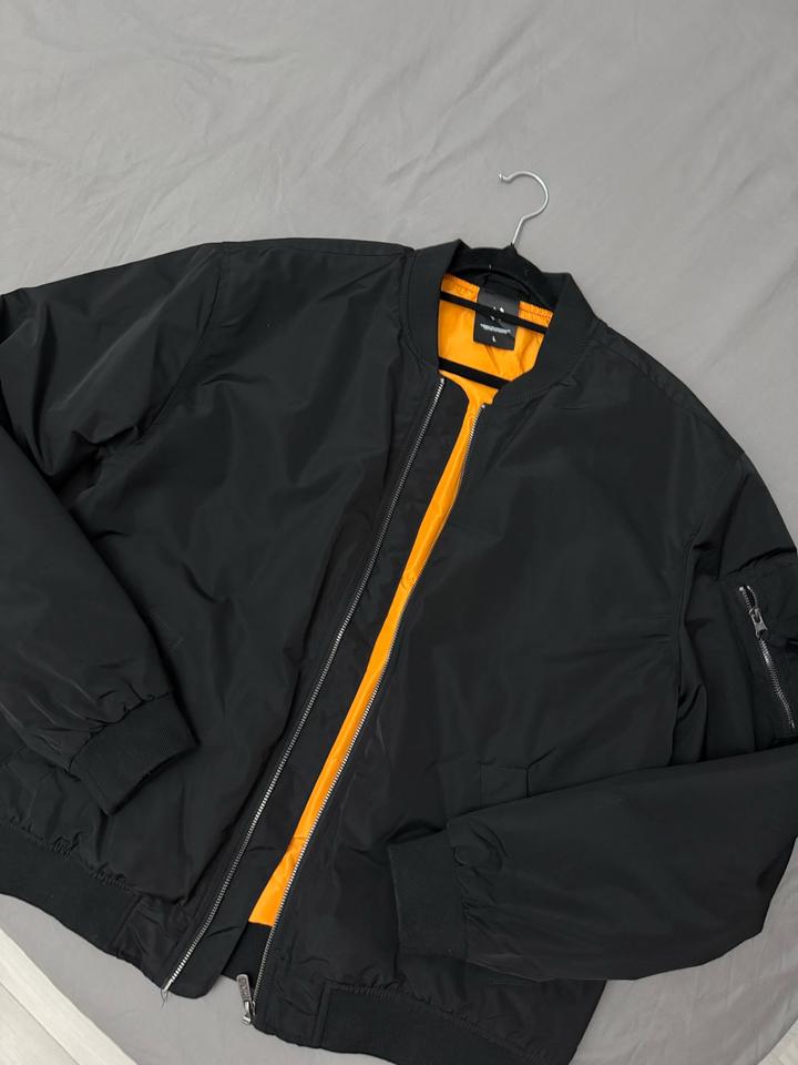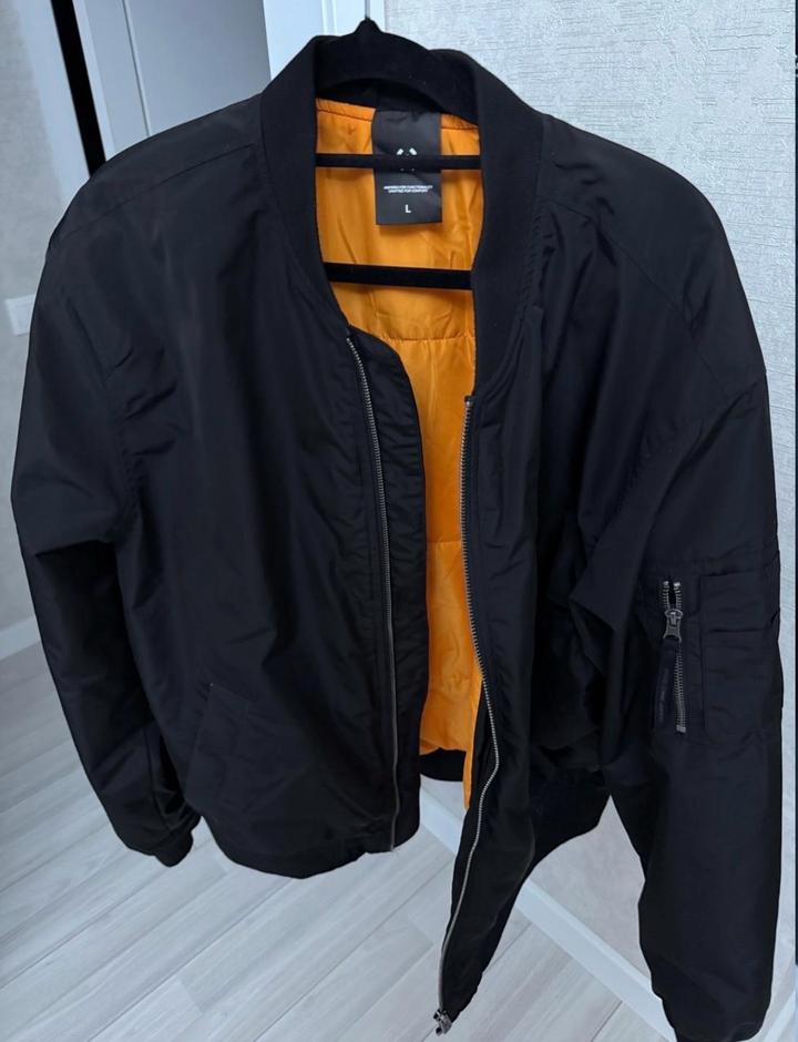 Стильный бомбер, для весны и осени. Удобный, комфортный, внутри акцентный оранжевый подклад. Носила 1-2 раза, в идеальном состоянии без повреждений и бе пятен. Размер на бирке L, подойдет на любой размер от S до L. Сидит оверсайз. Адекватный торг, пишите договоримся Артикул: 526091