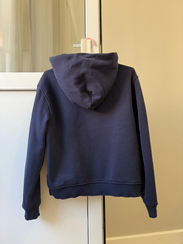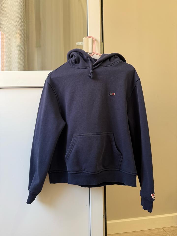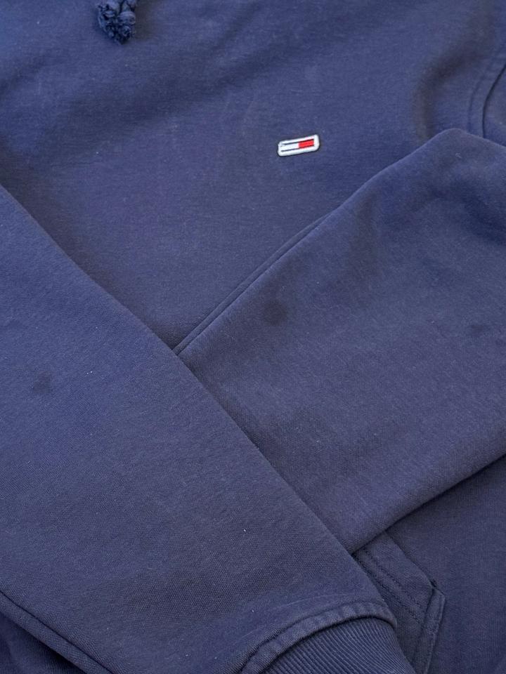 Темно-синяя толстовка от Tommy Jeans XS (подойдет на рост до ~160 см) Унисекс В хорошем состоянии, без катышков Есть небольшие, почти незаметные пятна на задней части рукавов (постаралась показать на последнем фото) Артикул: 526238