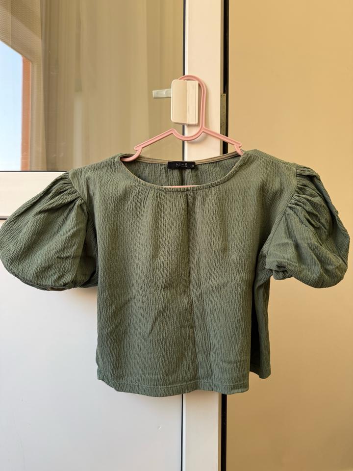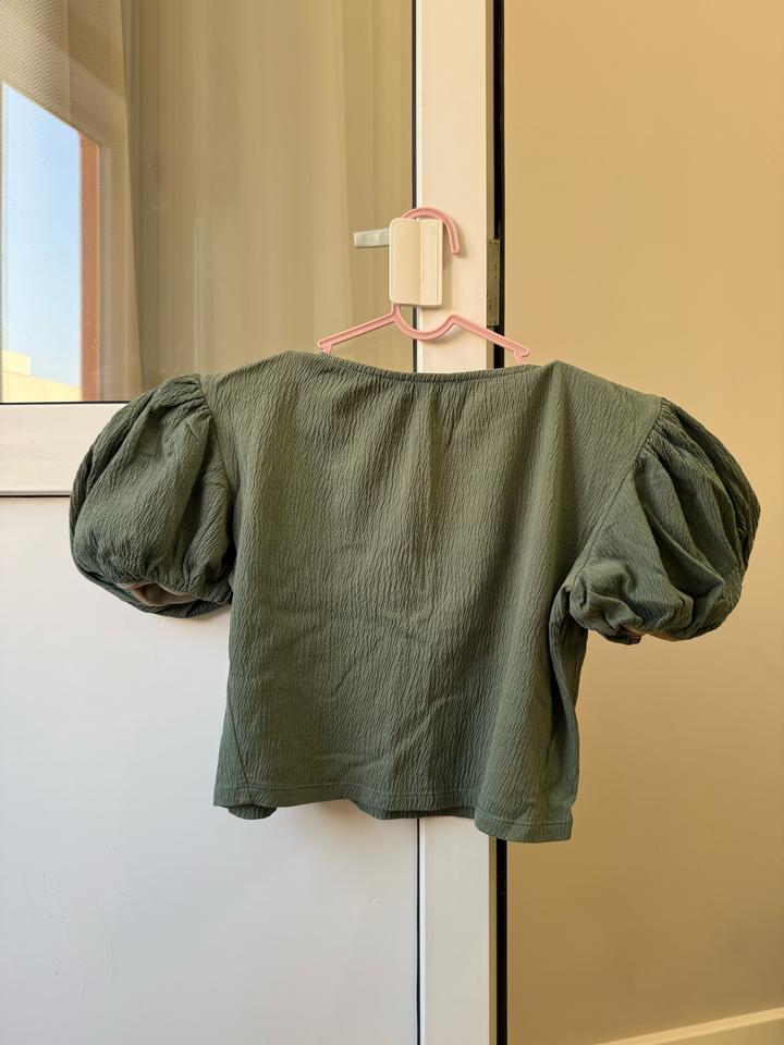 Кроп-топ с воздушными рукавами от Lime Цвет хаки Размер XS (подойдет до M) Артикул: 526310