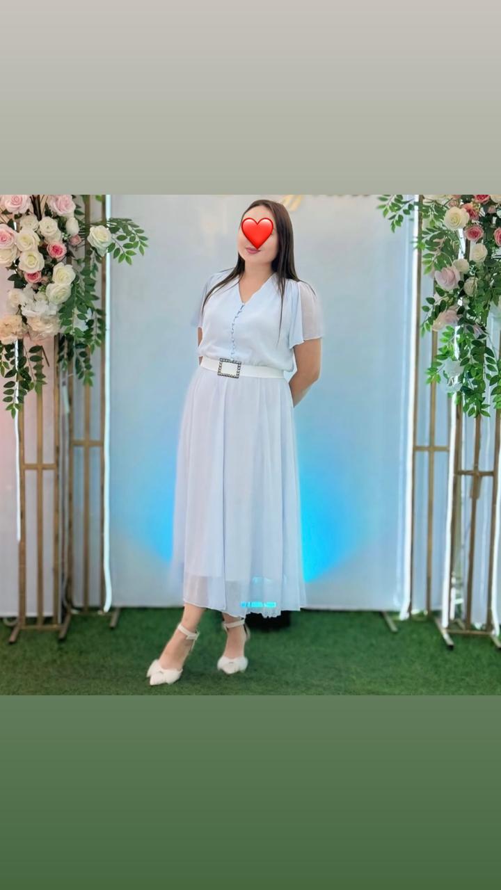 Продаётся нежное и элегантное платье в светло-голубом/пастельном оттенке 🤍 Надевалось всего один раз, состояние отличное — как новое. Размер: подходит на 52–56 Длина: миди (очень красиво смотрится на фигуре) Материал: лёгкий шифон с подкладом — воздушный, не просвечивает, приятный к телу. Отлично подходит для тёплой погоды и торжественных мероприятий. Платье очень женственное, аккуратно подчёркивает талию за счёт пояса и скрывает недостатки ✨ Идеально подойдёт на той, праздник, фотосессию. Артикул: 526350