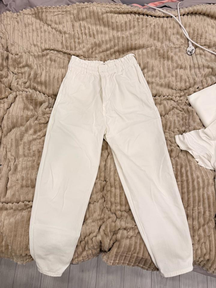 Белые брюки Бананы, пару раз ношенные. пятен нет. размер S Артикул: 526423