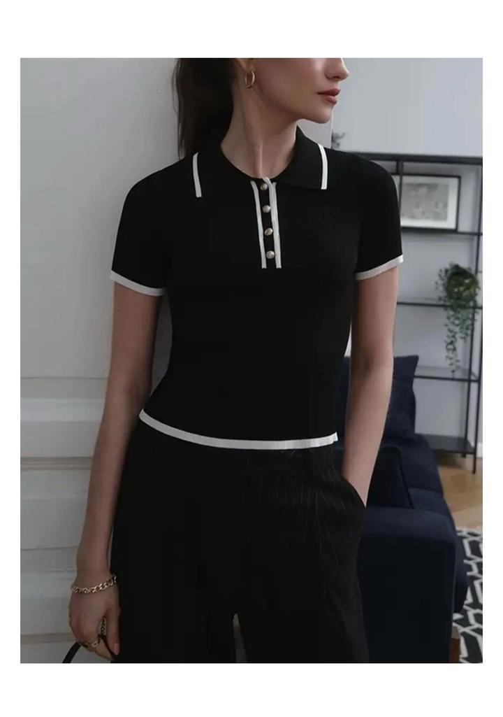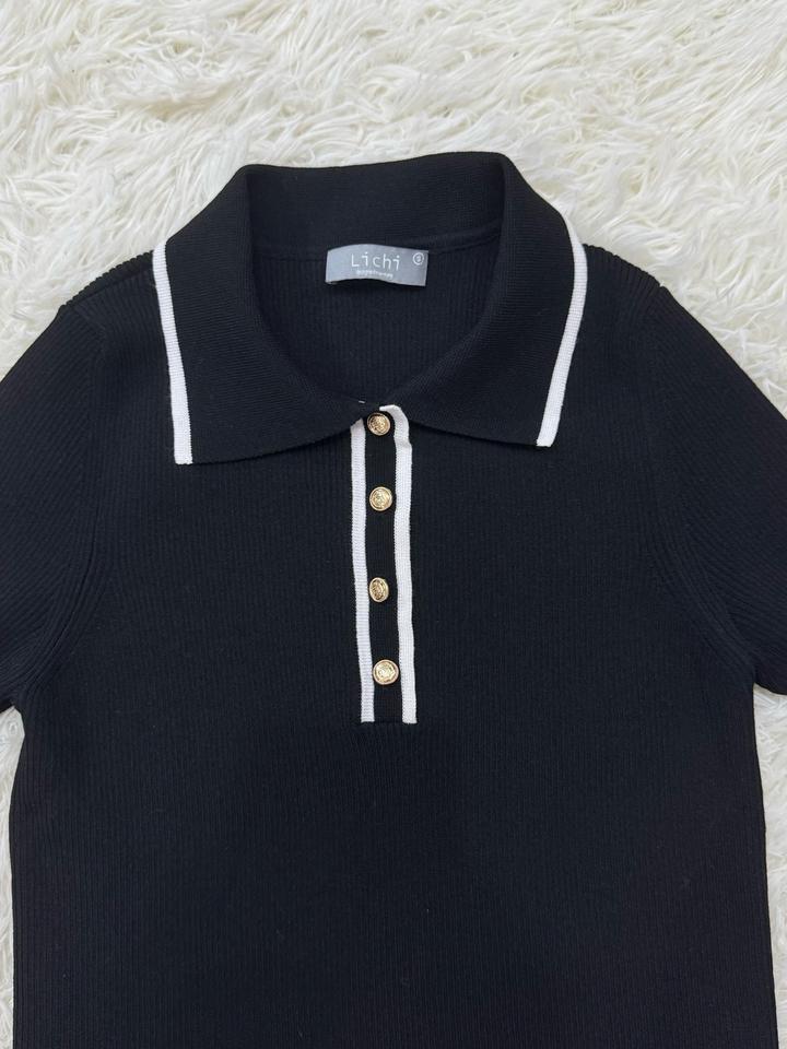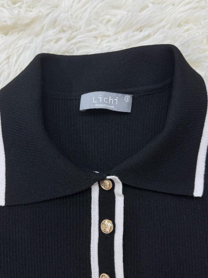Черная поло от Lichi с белыми полосками и пуговицами золотого цвета. Смотрится элекснтно. Размер xs, s Артикул: 526480