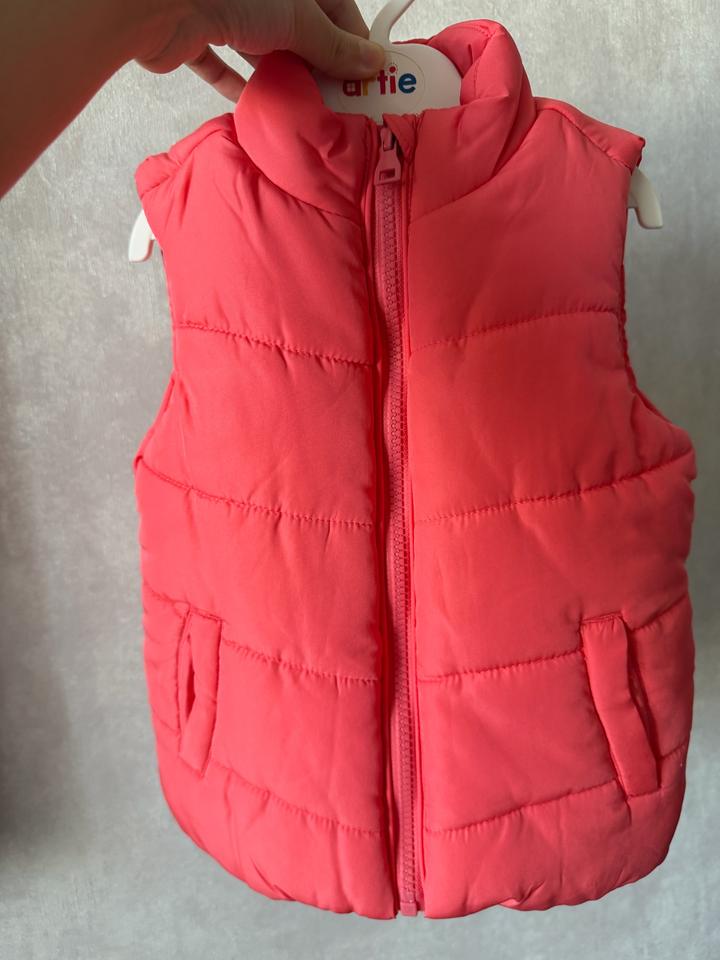 Жилетка для девочки. Носили в годик и чуть старше, сейчас нам год и 9 мес, уже маловата. Цвет коралловый Артикул: 526641
