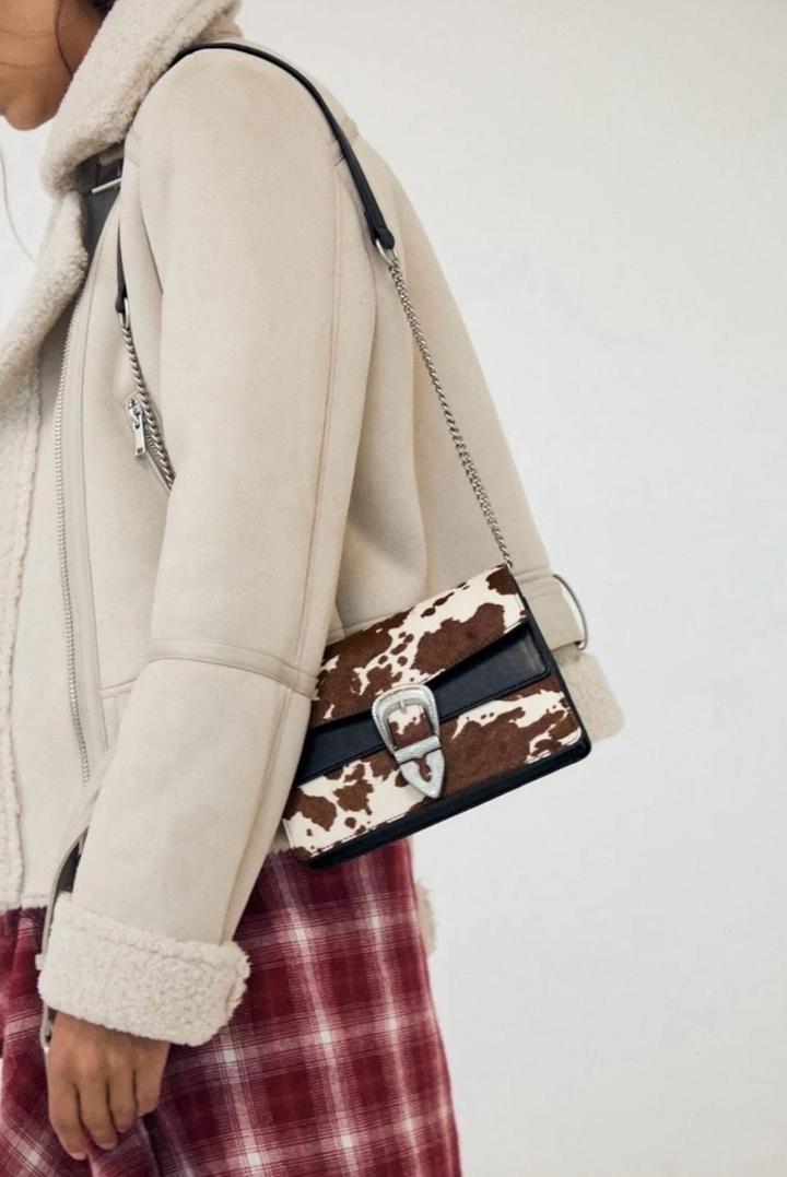 Стильная сумка Stradivarius 🤍 Трендовый animal print (под корову). Идеально под базовые образы — сразу делает look дороже и интереснее. Цепочка + винтажная застёжка = эффект «как из Pinterest». • формат: мини / через плечо • очень лёгкая и удобная Артикул: 526803