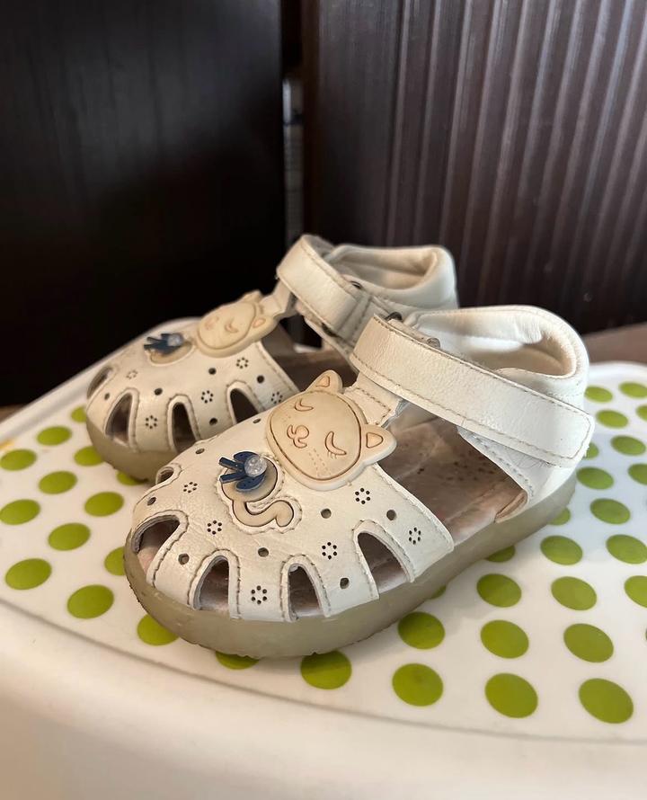 Белые ортопедические, детские сандали , Российского производства. Удобные, мягкие носили в садике. Стелька из натуральной кожи, подошва не скользит, жесткий задник. Есть 2 размера (22,23) Артикул: 526844