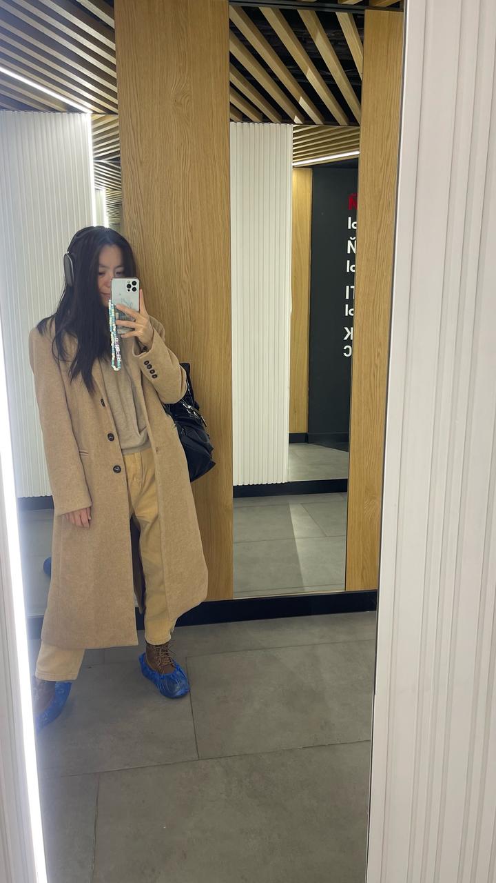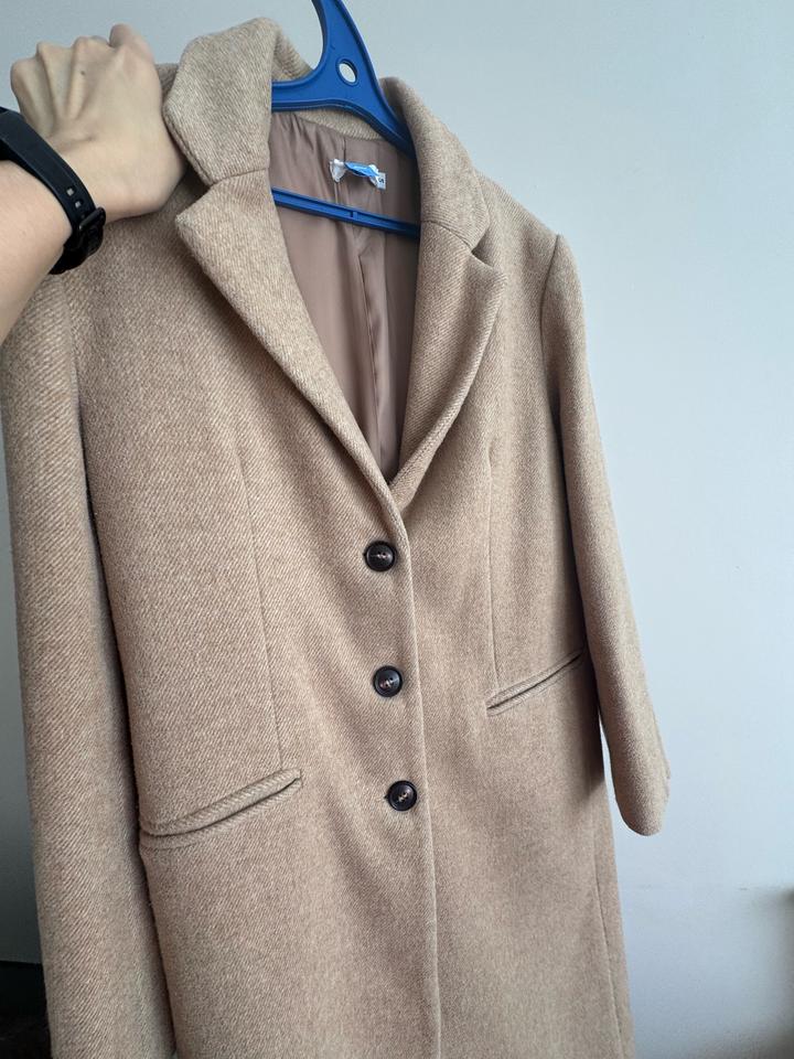 Пальто в цвете кэмел с подкладом. Корея. Подойдет на размер S. Состояние хорошее, но сам материал вроде скатывающий. После химчистки Артикул: 526891