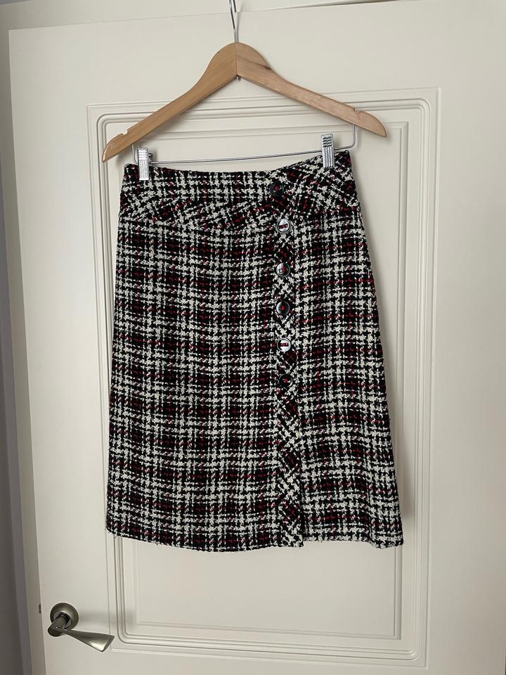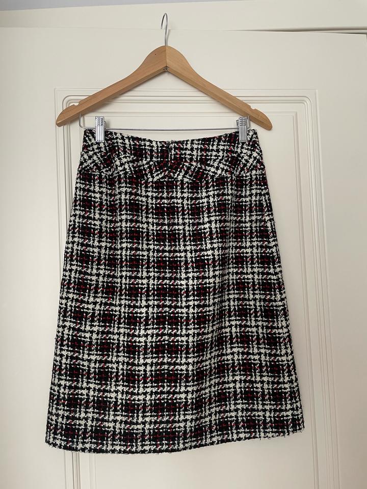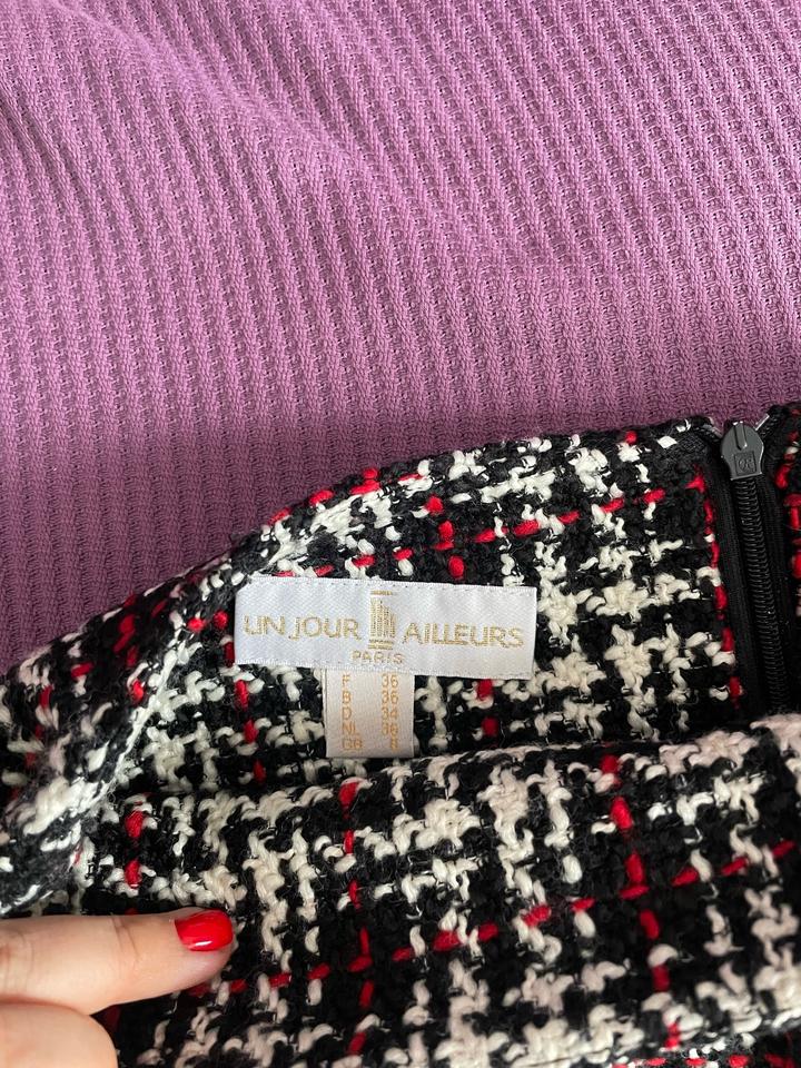 Элегантная твидовая юбка от французского бренда Un Jour Ailleurs — стиль в духе Chanel, который всегда актуален. 🔹 Бренд: Un Jour Ailleurs Paris 🔹 Размер: S / FR 36 🔹 Цвет: чёрно-белый с красными акцентами 🔹 Фасон: А-силуэт 🔹 Длина: до колена 🔹 Детали: декоративные пуговицы спереди Твидовая ткань выглядит дорого и добавляет образу французской утончённости. Юбка отлично держит форму и красиво садится по фигуре. Идеально сочетается с рубашками, водолазками и жакетами. Артикул: 526971