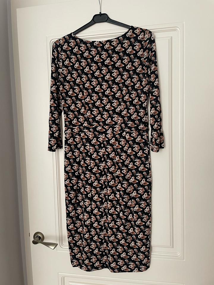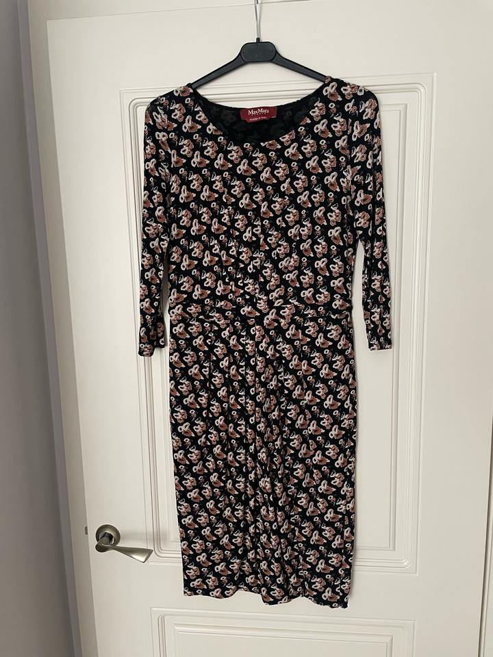 Женственное платье от Max Mara Studio с нежным цветочным принтом — идеальный вариант для повседневной элегантности. 🔹 Бренд: Max Mara Studio (Made in Italy) 🔹 Размер: S 🔹 Цвет: чёрный с бежево-коричневым цветочным принтом 🔹 Фасон: приталенный, с мягкой драпировкой на талии 🔹 Длина: миди 🔹 Рукав: 3/4 Платье красиво садится по фигуре, подчёркивает талию и создаёт очень женственный силуэт. Ткань лёгкая и комфортная, отлично подходит как для офиса, так и для повседневных выходов. Артикул: 526979