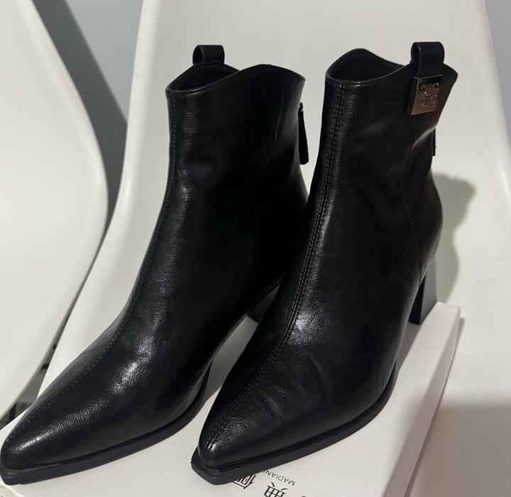 Кожаные чёрные ботинки (осень–весна) Размер: 38 (подойдут и на 38,5) Новые, ни разу не носились —не подошёл размер. В комплекте коробочка. Отличный вариант на межсезонье: удобные и стильные. Артикул: 527159