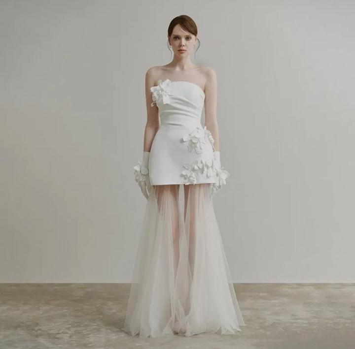 Элегантное свадебное / вечернее платье Нежное, утончённое платье. Идеально подойдёт для свадьбы, росписи, девичника, дня рождения или любого особенного вечера. — Верх: корсетный, с шнуровкой сзади, можно регулировать посадку по груди — Талия: подходит на размер S/M — Низ: воздушная прозрачная юбка, создаёт эффект лёгкости и «вау»-силуэта Надевалось всего 1 раз Состояние идеальное, без дефектов Артикул: 527236