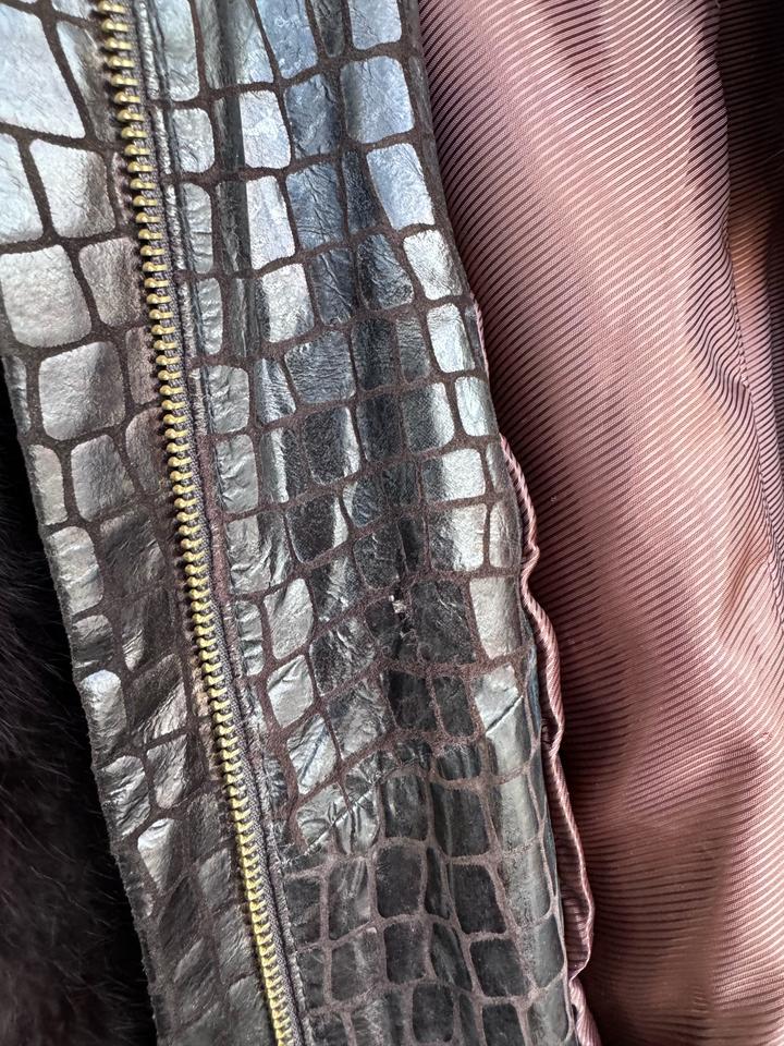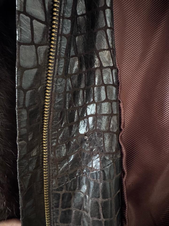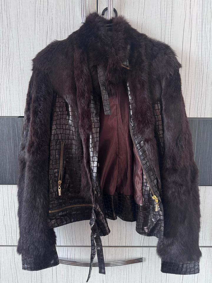 Куртка осенне / весенняя . Натуральный мех кролика ( так говорили примпокупке, бирок нет не знаю так ли это :-)) . Покупала очень давно в Стамбуле. Носила пару раз . На куртке внутри есть небольшой дефект( на фото видно) . Но дефект внутри, снаружи его не видно. Куртка подойдет на размер L и М. Внутри написан размер XL, но на XL не подойдет -маломерка. Артикул: 527280