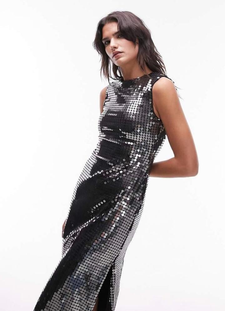 Платье Topshop, серое, полностью в пайетках. Новое с биркой. Размер XS. Артикул: 527322