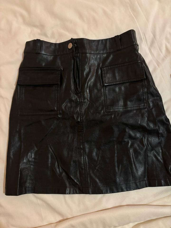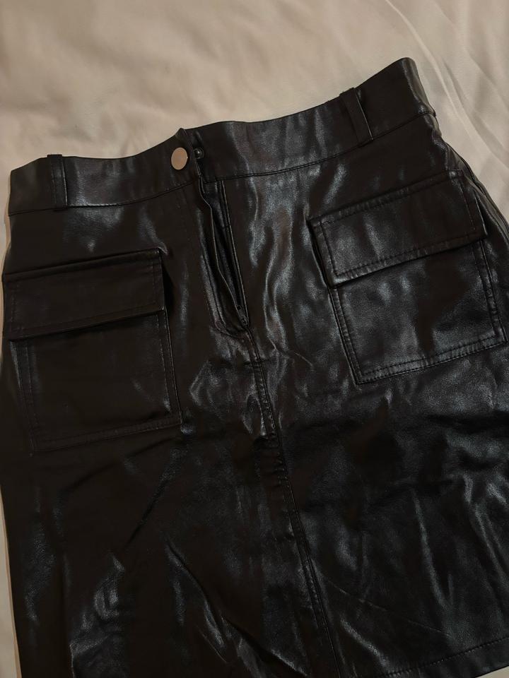 Кожаная черная мини юбка,на фоте не глаженая а так очень красивая и минималистично смотрится Артикул: 527980