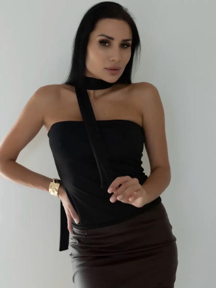 Удлинённый розовый топ-бандо из премиальной двухслойной ткани подчёркивает фигуру и создаёт элегантный образ в стиле old money. Открытые плечи и спина обеспечивают комфорт, а шарф акцентирует шею и декольте. Идеален для вечеринок и стильных образов. Артикул: 528100