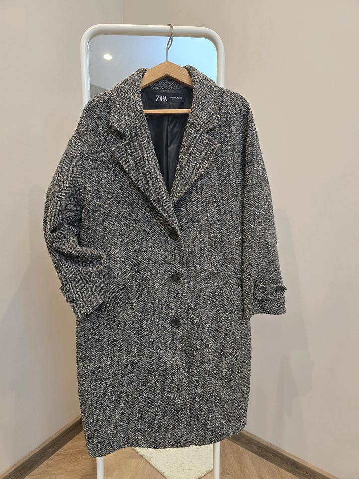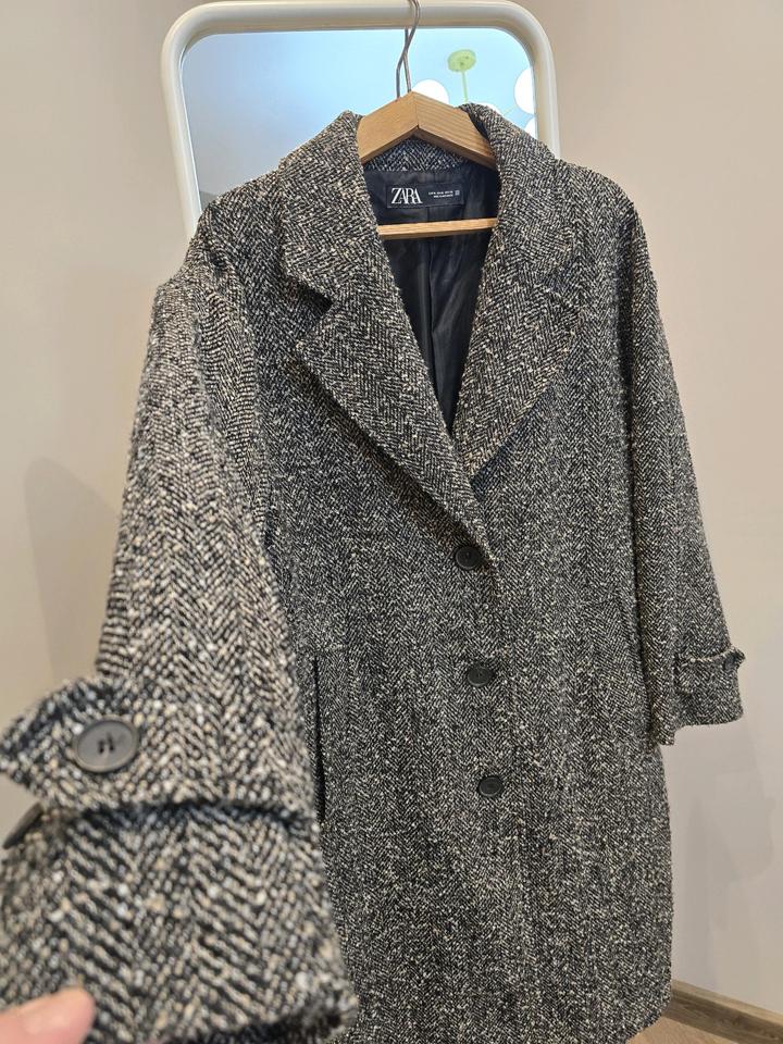 Стильное и универсальное пальто от ZARA в актуальном твидовом исполнении 🤍 Благородная текстура с серо-чёрным переплетением делает образ дорогим и собранным — идеально как на каждый день, так и под более классические выходы. платьями и ботильонами Размер: XL (сидит свободно, подойдёт и на L для оверсайза) Состояние: отличноe Артикул: 528221