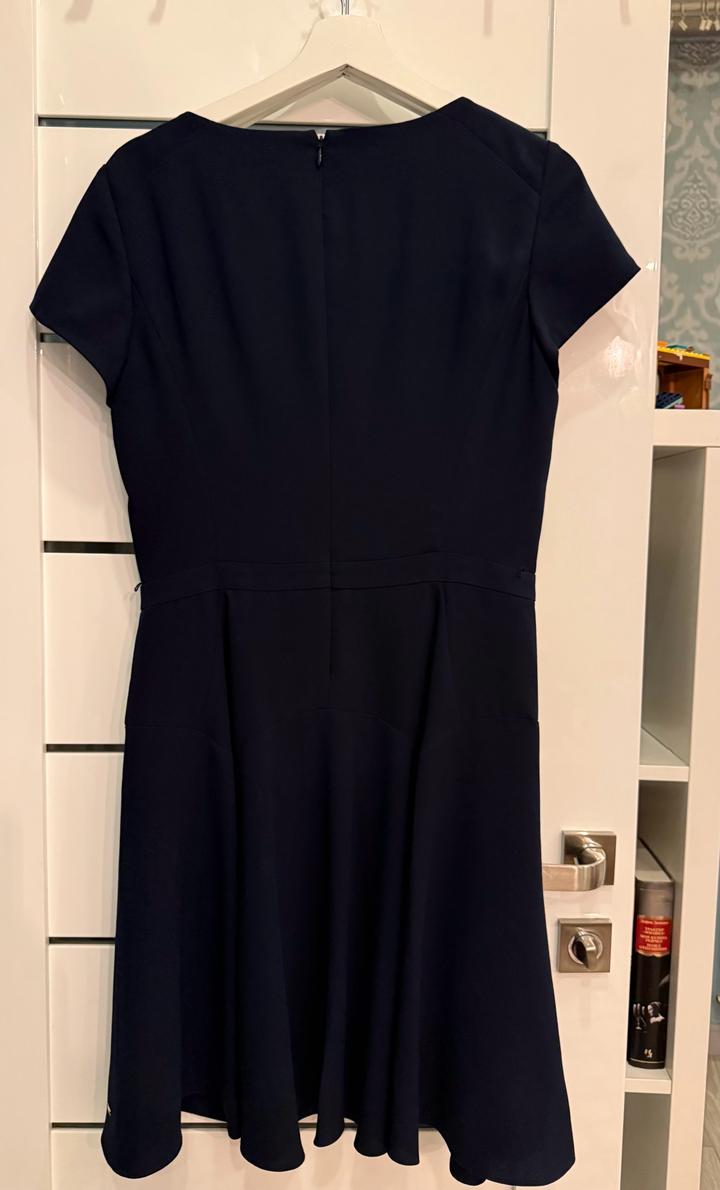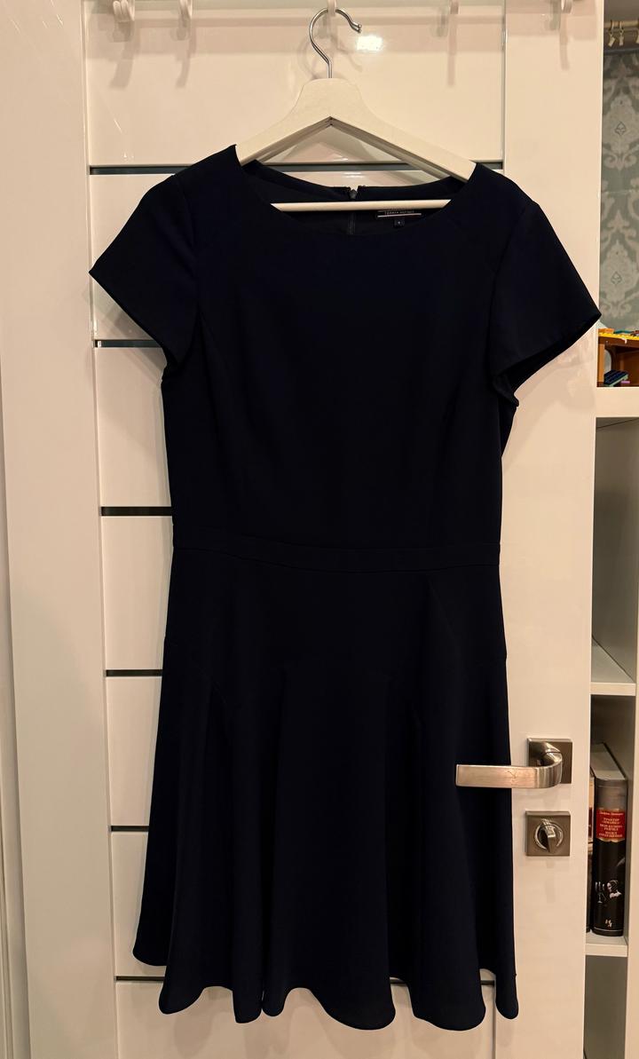 Темно-синее платье Tommy Hilfiger. Классическое, приталенное. Сзади на замке. Длина до колена. Размер М. На талии есть дырки для того, чтоб продеть пояс (свой пояс потерян 😅) Артикул: 528274