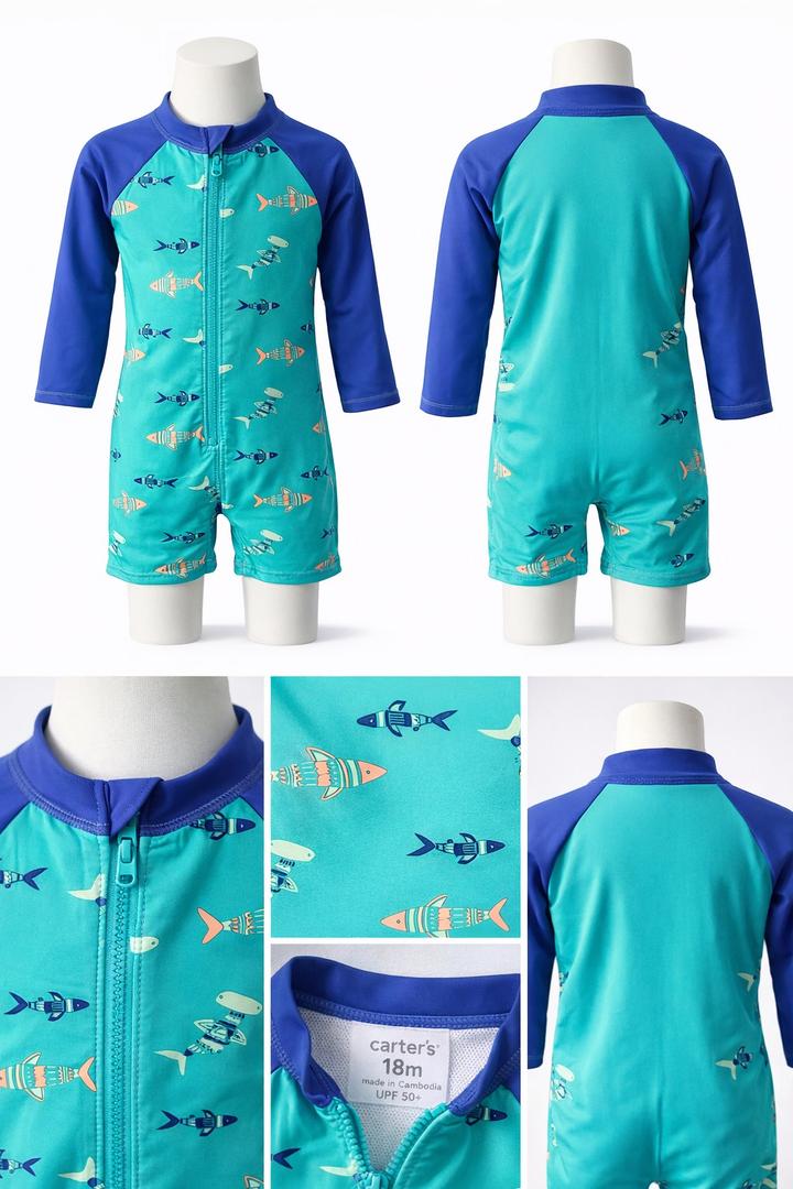 Лёгкий и удобный комбинезон для купания и активного отдыха на солнце. Отлично защищает кожу малыша от ультрафиолета SPF 50. Быстро сохнет. В отличном состоянии. Идеален для отпуска моря/бассейна. Артикул: 528393