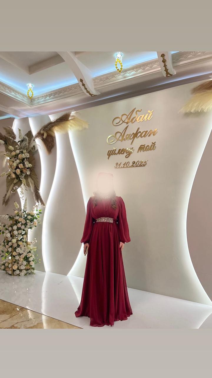 Продам элегантное вечернее платье в пол в насыщенном бордовом цвете. Состояние идеальное, надето всего 1 раз на мероприятие буквально на пару часов. • Размер: 44 • Детали: Пояс очень красиво расшит камнями, переливается. Рукава воздушные, ткань струящаяся и легкая. • Фасон: Очень стройнит и подчеркивает талию. Закрытое и благородное. Покупала намного дороже. Артикул: 528559