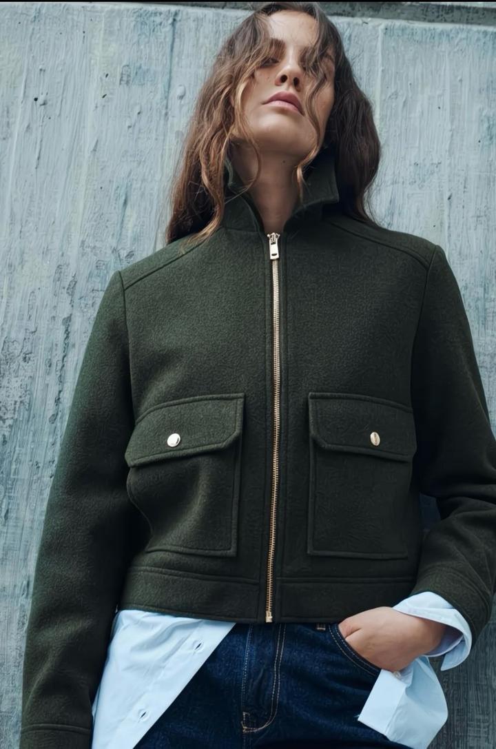 Бомбер цвета хаки из шерсти.Размер М,новый под Зара Артикул: 528567