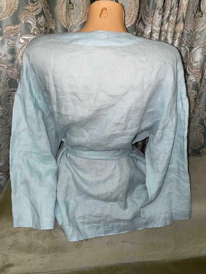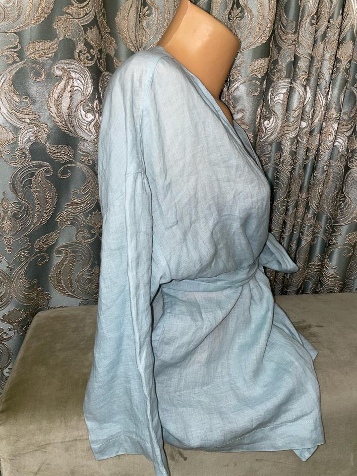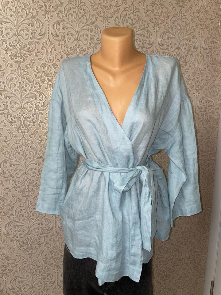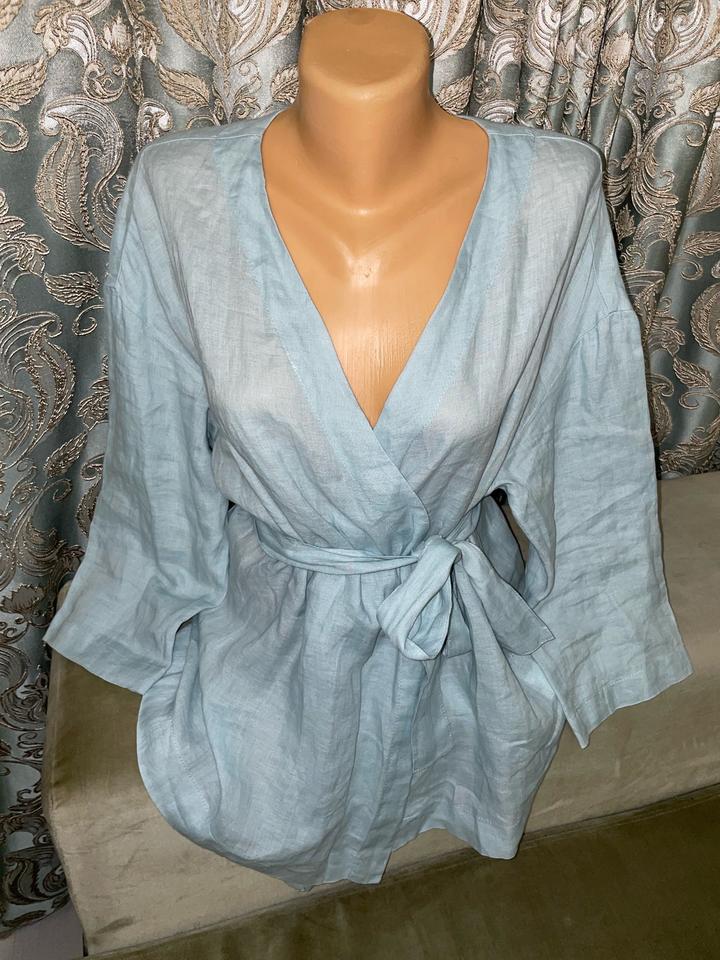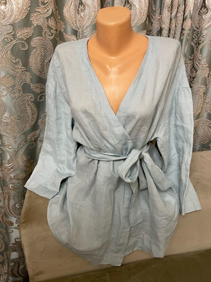100% лен кимоно небесно-голубого цвета На размер М-Л Артикул: 528686