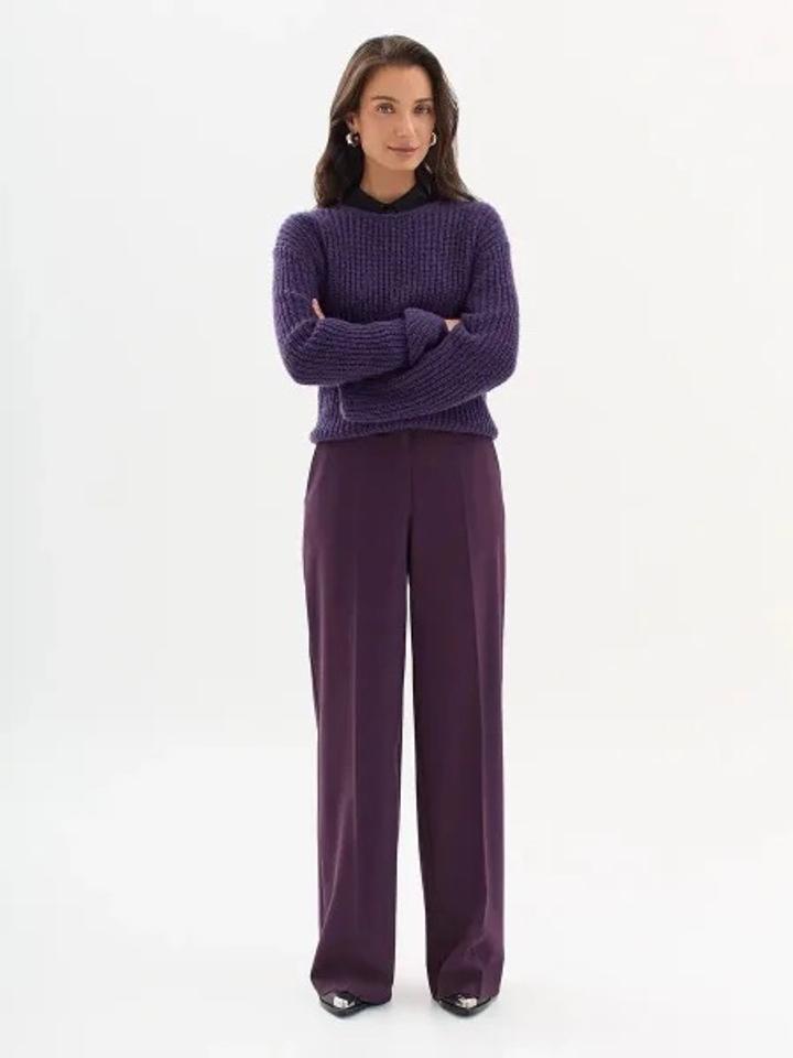 Брюки классические широкие с вышитыми стрелочками на высокой посадке. Баклажановый цвет, материал очень приятный, легкий Артикул: 528843
