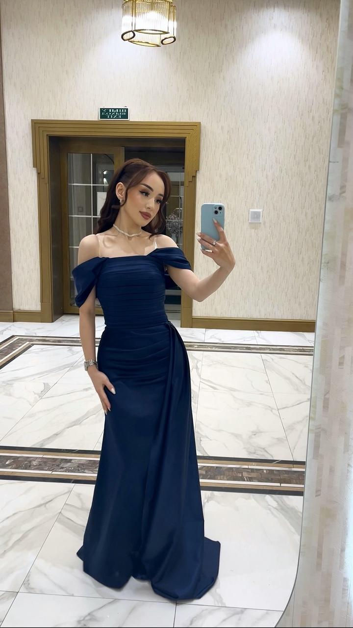 Темно синее атласное платье Сшито вручную, на размер 40-44(регулируется с помощью корсета) Имеется съемный шлейф, по желанию можно носить без него Ткань плотная и держит форму, носила всего 1 раз Торг есть Артикул: 528890