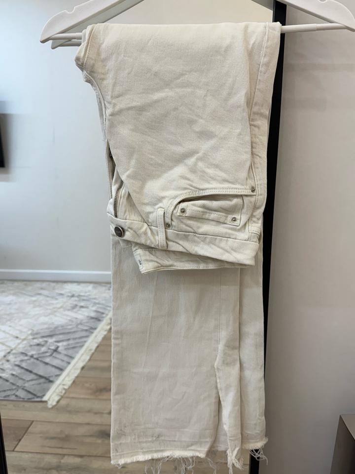 Молочные джинсы на средней посадка 2000тг. Есть пятна, можно отбелить Артикул: 529073