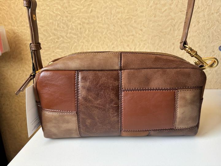 Сумка Zara Patchwork Leather (Новая коллекция) Продаю стильную сумку от Zara, выполненную в эстетике пэчворк. Идеальный аксессуар для создания уютных осенних и многослойных образов. Основные характеристики: Дизайн: Уникальное сочетание кожаных панелей в разных оттенках коричневого (от песочного до глубокого шоколадного). Стиль: Прямоугольная форма «багет», которая сейчас находится на пике трендов. Детали: Качественная золотистая фурнитура, регулируемый плечевой ремень Высота 13 Длина 27 см Артикул: 529074