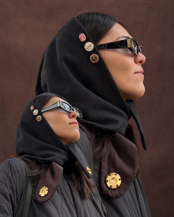 Косынка из 100% шерсти и подклада из хлопка с совескими значками (они отстегиваются). Идеально на осень и весну. Артикул: 529193