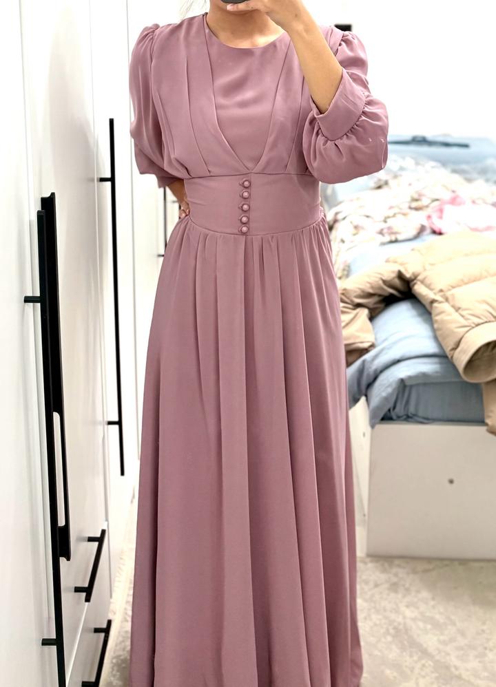 Нежное пудрово-розовое платье макси — идеальный выбор для женственного и утончённого образа. Лёгкая струящаяся ткань красиво садится по фигуре, подчёркивая талию и создавая плавный силуэт. Объёмные рукава 3/4 и декоративные пуговицы добавляют романтичности и аккуратных акцентов. **Размер:** 46 **Длина:** в пол Подойдёт как для повседневных выходов, так и для особых случаев. Артикул: 529222