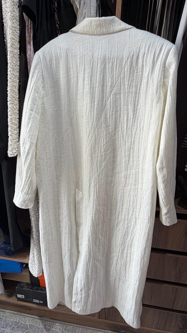 Новое классическое пальто Zara облегченного плана (или длинный блейзер) на сезон весна-лето из смесового льна Размер L Цвет экрю (молочный) Ткань лен Спереди пуговицы, сзади разрез, на подкладе Покупала за 89.990, отлично стилизуется поверх коротких шорт, юбок на лето, а на весну вообще находка для ярких образов Артикул: 529259