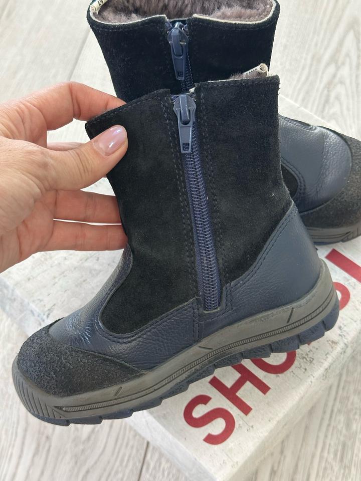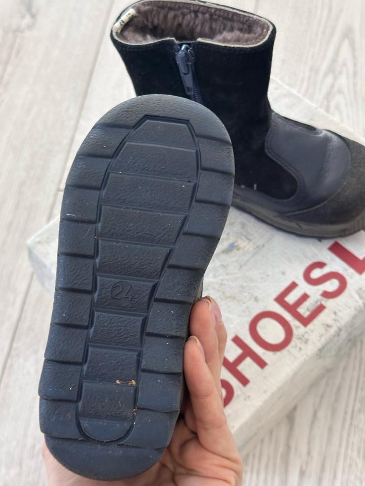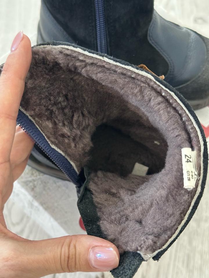 Натуральная замша, внутри полностью цигейка, очень теплые. Возраст 2 года, размер 24, темно синие Артикул: 529281