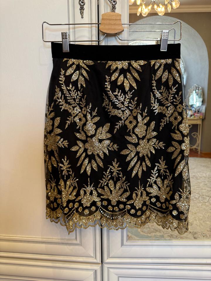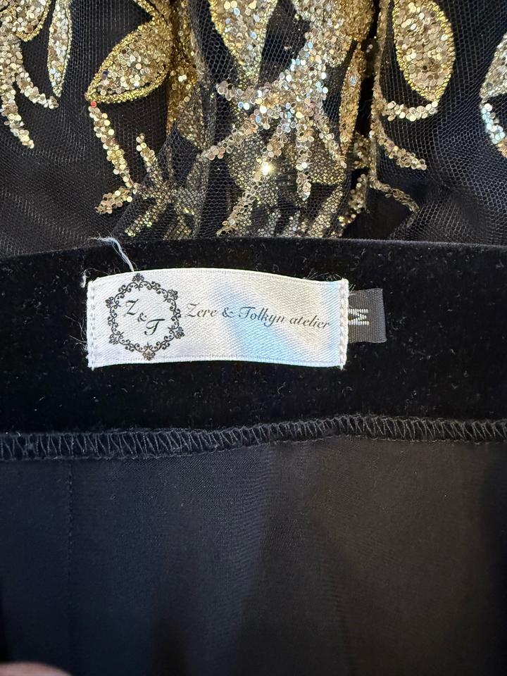 Черная мини юбка расшитая блестками с бархатным поясом. Ручная работа. Казахстанский дизайнер Артикул: 529282