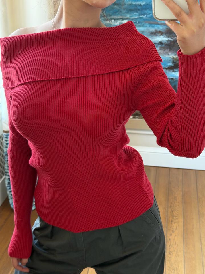 Красная off-shoulder водолазка в отличном состоянииS/M